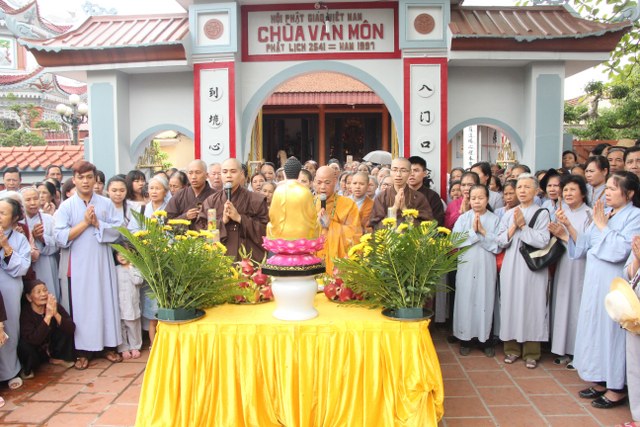 Được biết, Đại hùng chung được các nghệ nhân cơ sở đúc đồng Duy Thuấn (Ý Yên, Nam Định) có truyền thống và kinh nghiệm lâu năm về việc đúc chuông và các thánh tượng thực hiện. Buổi lễ diễn ra ngắn gọn, đơn giản nhưng đầy đủ ý nghĩa. Đại hùng chung có chiều cao 1m5, trọng lượng 300kg. Sau khi đúc hoàn thành, Đại hùng chung sẽ được tôn trí tại giảng đường chùa Văn Môn.