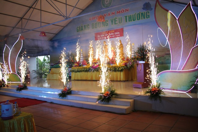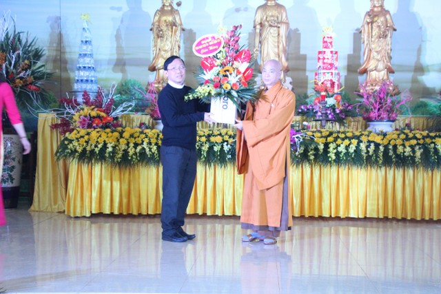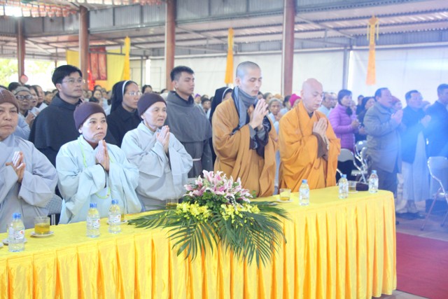 Buổi lễ vinh dự đón tiếp quý vị lãnh đạo: ông Trần Tiến Chinh, Phó Chủ tịch UBND xã; ông Nguyễn Thế Bê, Bí thư Đảng ủy, Giám đốc Bệnh viện Phong – Da liễu Văn Môn; đại diện chính quyền xã Vũ Vân, thôn Cộng Đồng; Linh mục Nguyễn Hữu Phước, Quản nhiệm họ giáo Đông Thọ và gần 500 Phật tử về dự lễ.