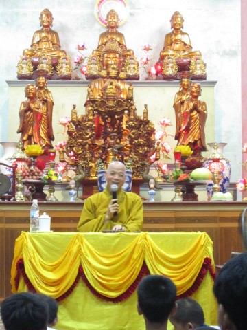 Tại buổi lễ, TT.Thích Thanh Định đã có lời pháp nhũ tới toàn thể các bạn gia nhập CLB TTN Phật tử chùa Văn Môn, tán thán công đức và sách tấn tu học.