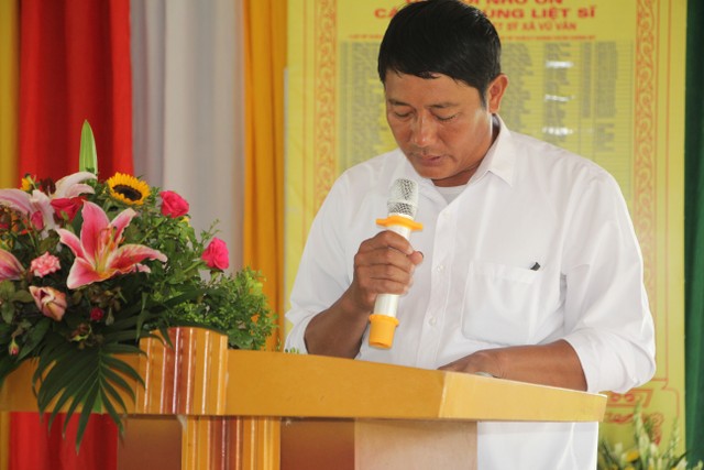 Đại lễ cầu siêu hôm nay đã được chuẩn bị chu đáo, thu hút đông đảo Phật tử và đồng bào cùng sự quan tâm của các cấp lãnh đạo địa phương tham gia. Thay mặt các thân nhân, gia đình liệt sỹ, ông Trần Tiến Dũng có đôi lời cảm tưởng: “Chúng tôi hoan nghênh, ghi nhận tấm lòng sự tri ân đối với các anh hùng liệt sỹ của các cấp chính quyền phường, chùa Văn Môn cùng tín đồ Phật tử đã phát tâm chủ trì tổ chức Đại lễ cầu nguyện cho các anh hùng liệt sỹ – những người con của quê hương Vũ Vân anh hùng hết sức trang nghiêm và long trọng này”.