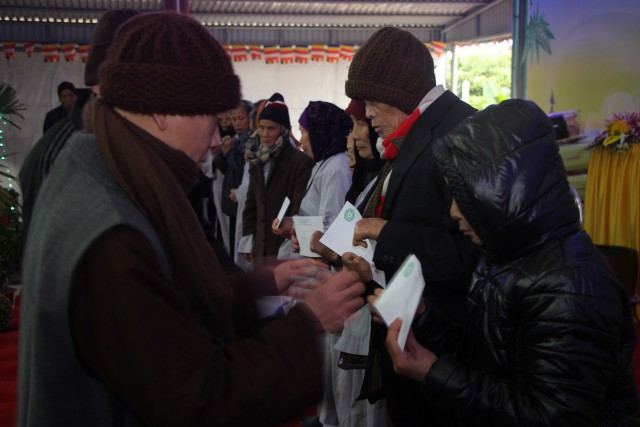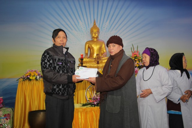 Với tinh thần ban vui, cứu khổ của đạo Phật và góp phần chăm lo Tết các bệnh nhân phong đang điều trị tại bệnh viện Phong – Da liễu Văn Môn, Thượng tọa trụ trì cùng hội đồng bệnh nhân đã trao 250 xuất quà cho các gia đình, mỗi xuất trị giá 100 nghìn tiền mặt, 200 kg gạo, 20 chăn đông, 20 áo khoác; DVD “Hoa đăng đêm Di Đà chùa Từ Xuyên năm Ất Mùi”. Chư Tăng và Phật tử bản tự xin gửi lời tri ân đến Phật tử Nguyễn Thị Nhung (Pháp danh Diệu Ngọc); Trung tâm vận chuyển cấp cứu 115 Thái Bình đã cúng dàng tịnh tài, tịnh vật ủng hộ chương trình tặng quà Tết tới các bệnh nhân phong