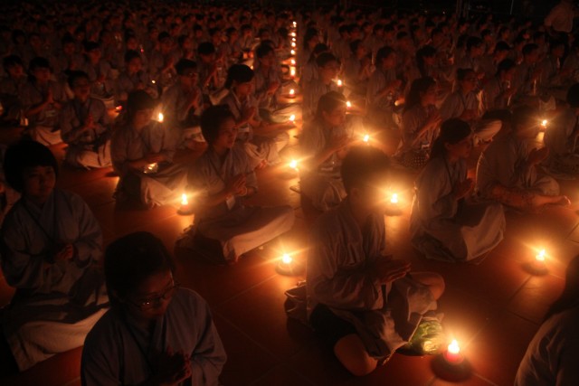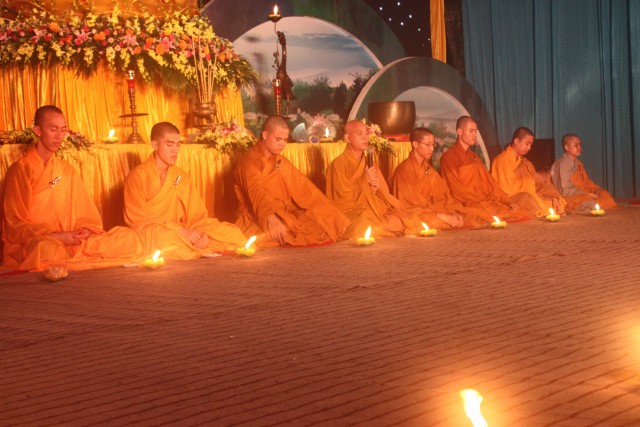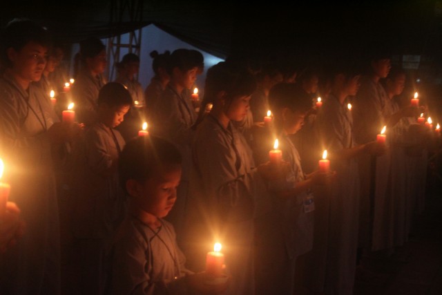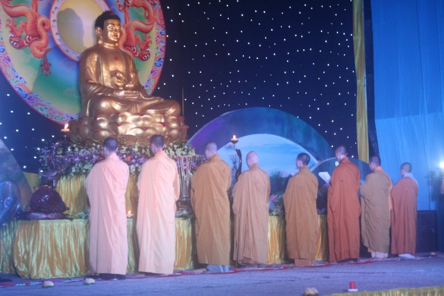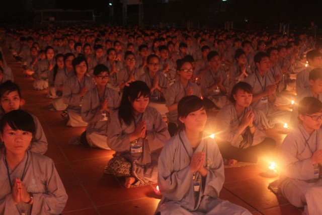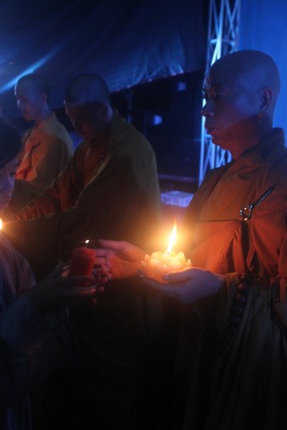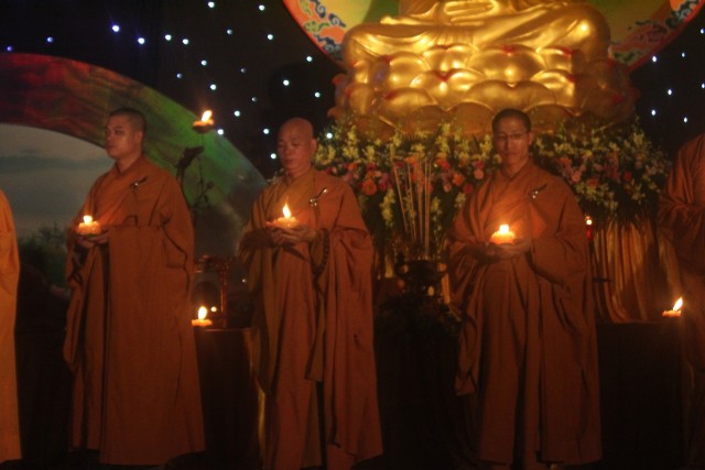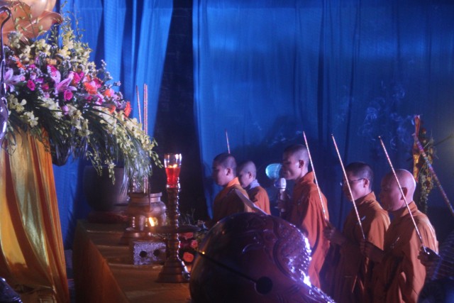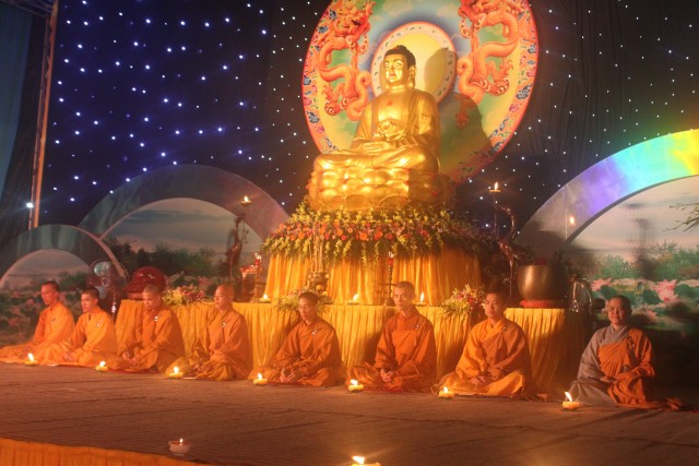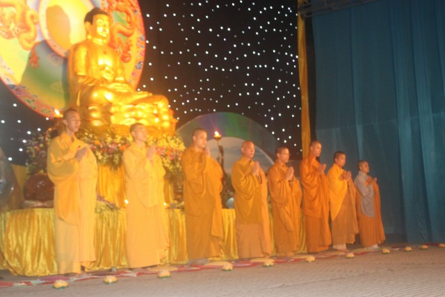 Đúng 20h, buổi lễ bắt đầu. Đại chúng trang nghiêm niệm Phật, cung nghinh chư Tôn đức quang lâm.