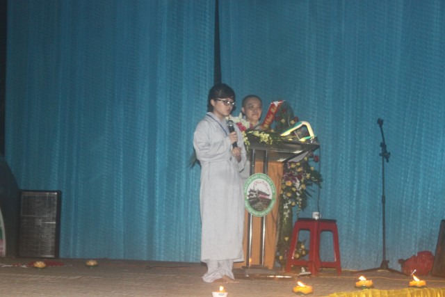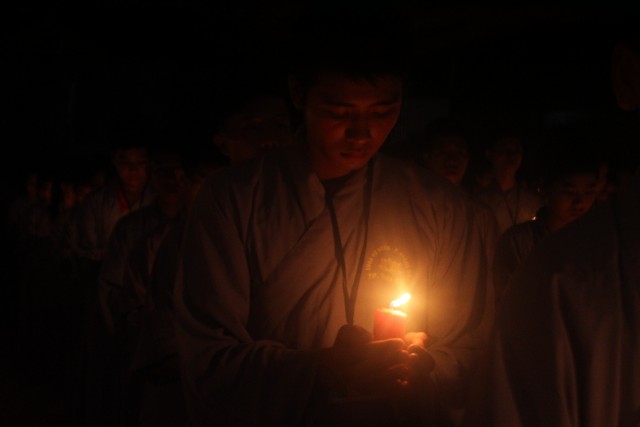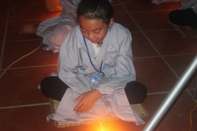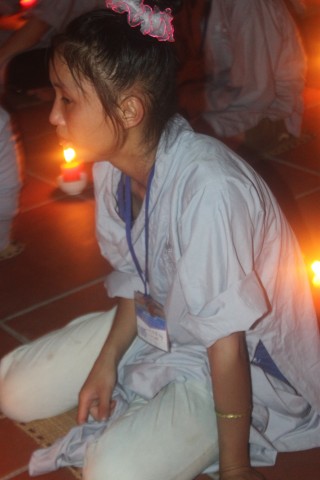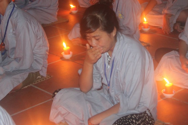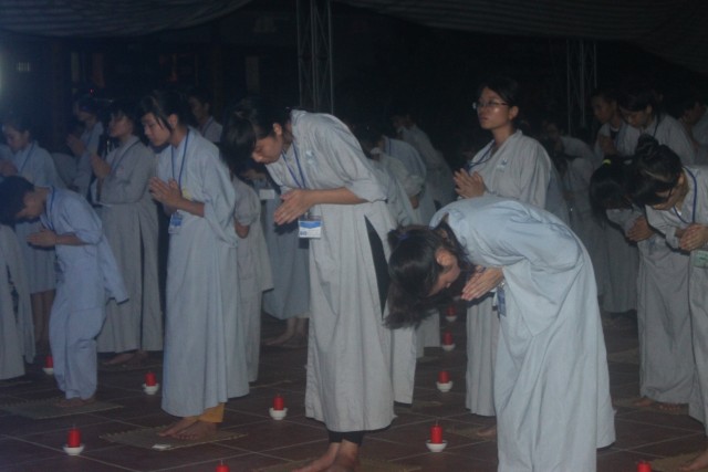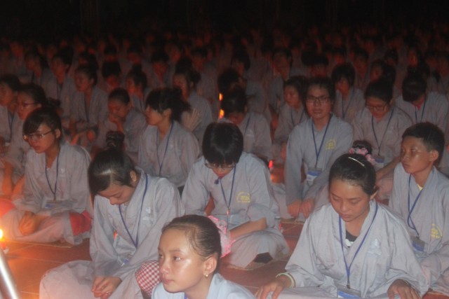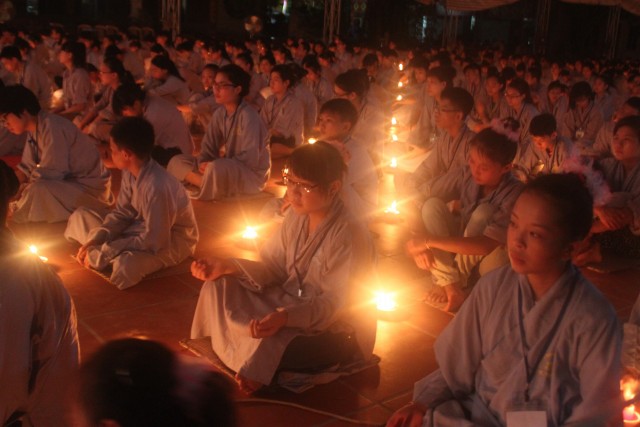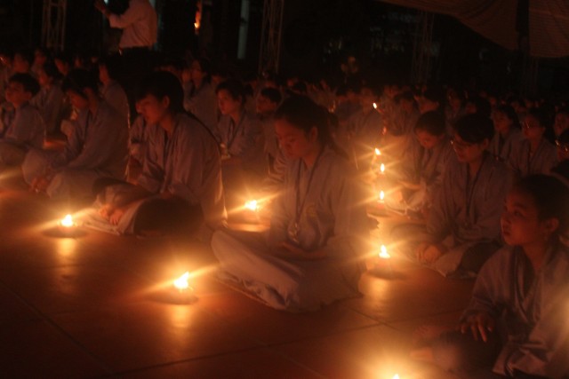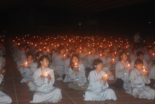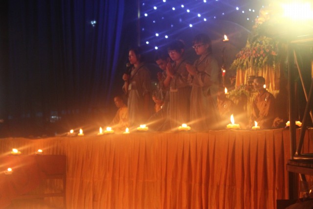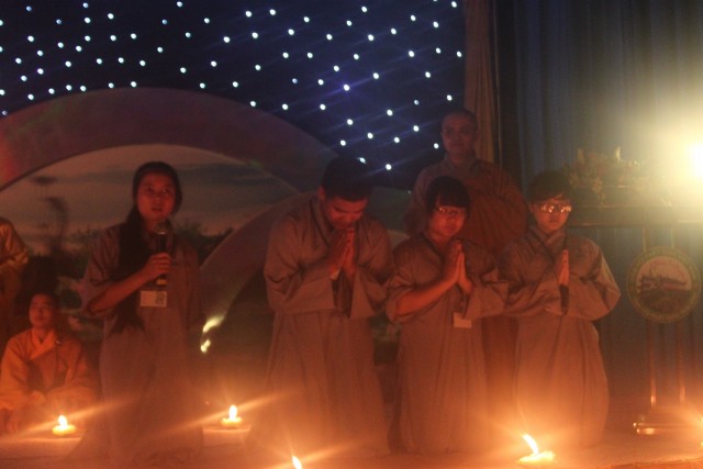 Mở đầu buổi lễ là nghi thức niêm hương bạch Phật. Tiếp đến, TT trụ trì đã đón nhận ánh sáng từ bàn Phật truyền trao cho Chư tôn đức rồi ra tỏa ra đại chúng. Toàn thể đạo tràng cùng đồng thanh đọc “20 điều nhớ ơn”. Xen kẽ trong buổi lễ là thời pháp vô cùng xúc động của SC Hương Nhũ nói về tấm lòng của cha mẹ dành cho con cái. Những giọt nước mắt đã rơi, nhưng cái cúi đầu ăn năn, những lời sám hối vì những cử chỉ, hành động của con cái làm cha mẹ phiền lòng. Bao nỗi niềm chất chứa như vỡ òa hoà cùng nước mắt trước sự chứng minh của quý tôn đức. Trong lời đạo từ, TT trụ trì đã nhắc lại về bốn ân và sự đền ơn. Những lời nhắc nhở của thầy làm cho các bạn thiện sinh thấm thía hơn ý nghĩa của đêm thắp nến tri ân.