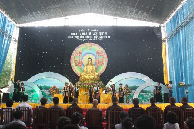 Trước đó, vào đầu giờ sáng, ĐĐ.Thích Thiện Tài – GS Thiền viện Sùng Phúc (Long Biên, TP.Hà Nội) quang lâm và có thời pháp với chủ đề “Bổn phận hiếu nghĩa của người làm con”.