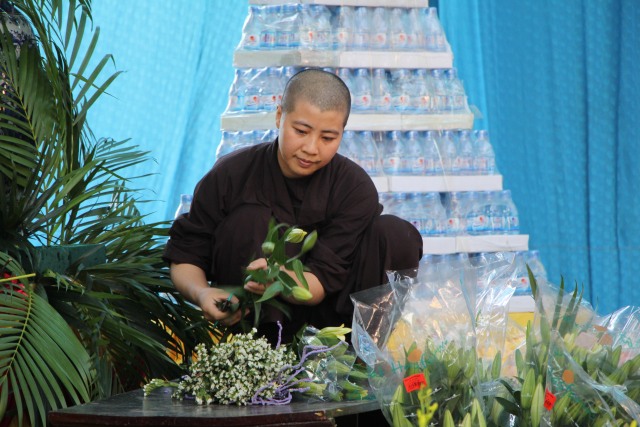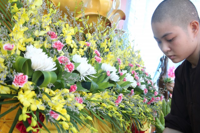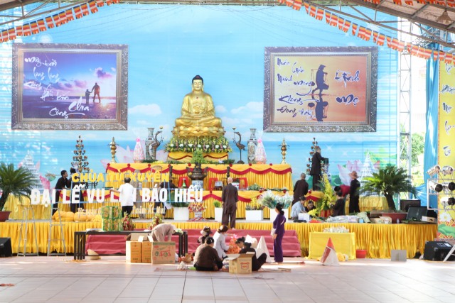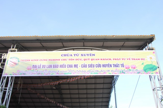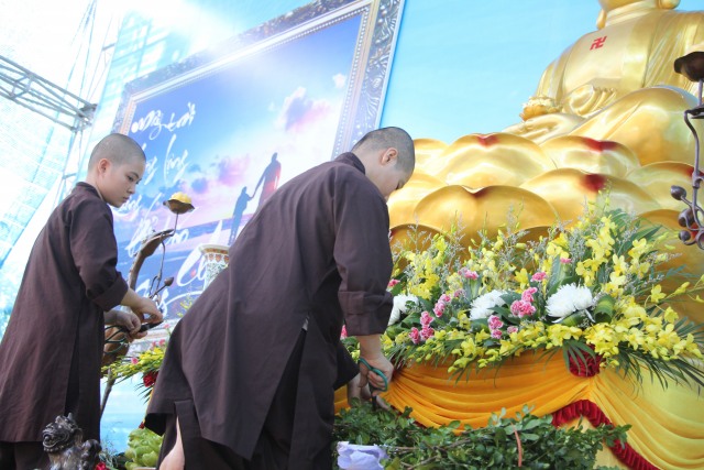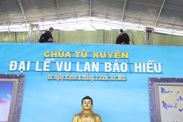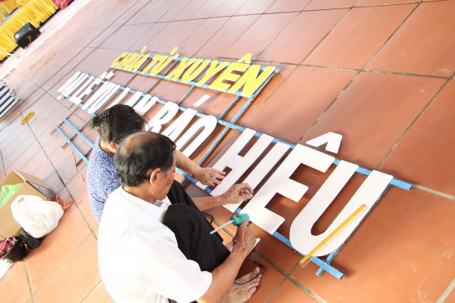 Những băng rôn, biểu ngữ, trang trí sân khấu, lễ đài… nêu cao tinh thần đạo hiếu đã được quý thầy, cô, Phật tử trang trí trong khuôn viên chùa một cách ngay ngắn và trịnh trọng. Tất cả như muốn nhắc nhở chúng ta rằng, hãy thể hiện tình thương của mình đối với hai đấng sinh thành khi còn có thể. Vì lỡ mai này…