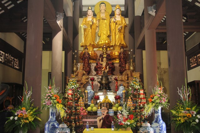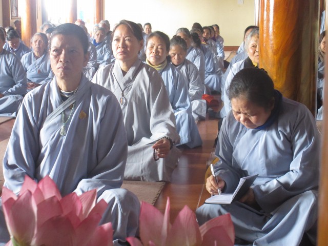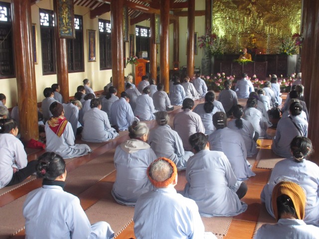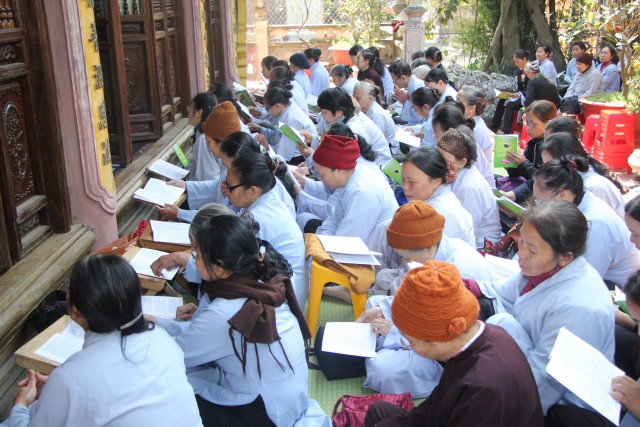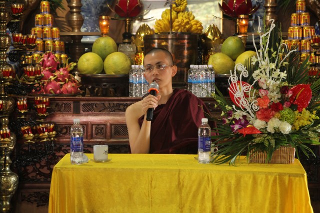 Trước khi vào pháp hội, quý Phật tử đã được lắng nghe ĐĐ.Thích Thanh Minh, thiền sinh tu học tại Myanma chia sẻ về kinh nghiệm tu học tại xứ sở chùa vàng và vai trò của nghiệp trong đời sống mỗi con người. Thông qua pháp thoại, quý Phật tử hiểu thêm về khái niệm, xuất phát và tác động của nghiệp tới các hành động của con người và mối liên hệ với nhân quả. Từ đó, mỗi người biết sống chính niệm, tỉnh giác, làm chủ tâm ý, giữ gìn cho thanh tịnh để gieo thiện nghiệp, hưởng phúc lành, quả tốt.