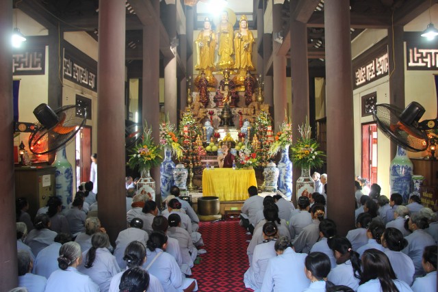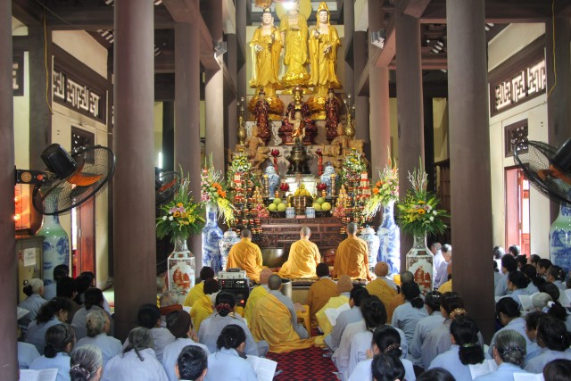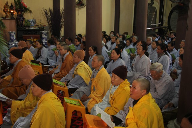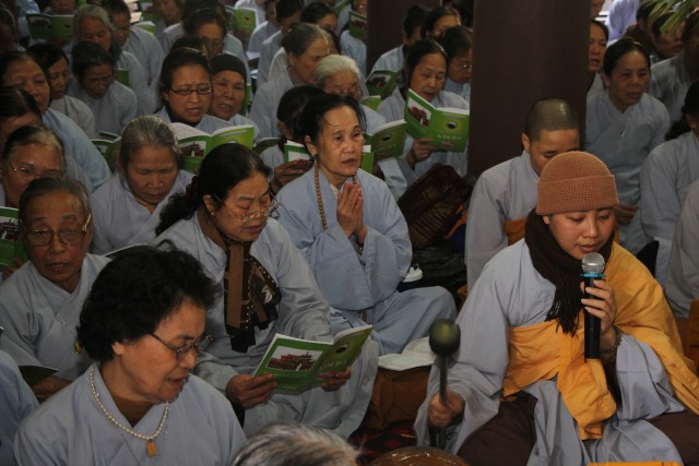 Tiếp đó, chư tôn đức cùng quý Phật tử đã tụng thời kinh A – Di- Đà, hồi hướng cho lục đạo pháp giới chúng sinh và cha mẹ trong nhiều đời đã quá vãng được siêu thăng, cha mẹ hiện tiền được an lành, hạnh phúc. Đại lễ không chỉ là dịp để đến chùa lễ Phật cầu an mà còn mang ý nghĩa giáo dục lòng biết ơn, nhất là ơn Tam Bảo – Sư trưởng, ơn quốc gia xã hội, ơn cha mẹ, ơn vạn loại chúng sinh của mỗi người con Phật dù xuất gia hay tại gia; tu tập công đức gieo nhân lành để đời sống được an vui, hạnh phúc.