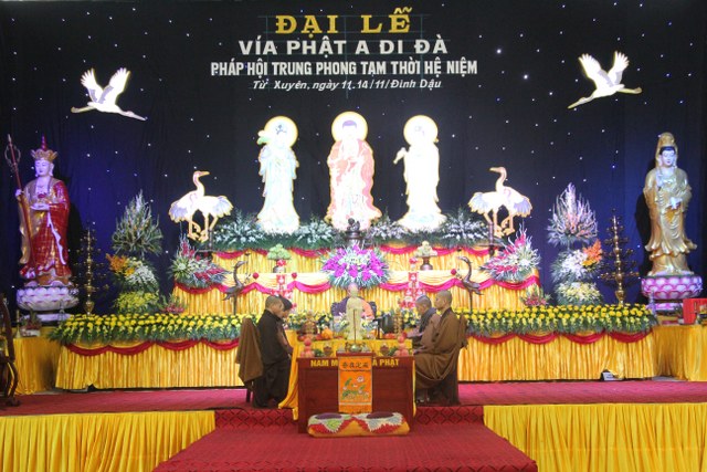 Vì lẽ đó, trong các ngày 28-30/12/2017, (nhằm ngày 11-13/11/Đinh Dậu), chùa Từ Xuyên (P.Hoàng Diệu, TP.Thái Bình) long trọng tổ chức Pháp hội Trung phong Tam thời hệ niệm, cúng dường lên đức Từ phụ A Di Đà, nguyện cầu cho Phật pháp trường tồn, Tăng già hưng thịnh, thế giới hòa bình, quốc thái dân an, chúng sinh được thấm nhuần Phật pháp, người người biết yêu thương nhau, hiện thời an lạc, ngày sau được sinh về nơi liên hoa chín phẩm.