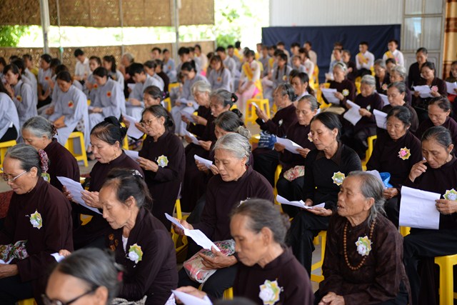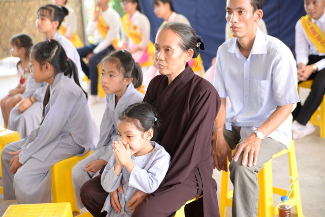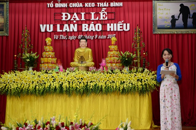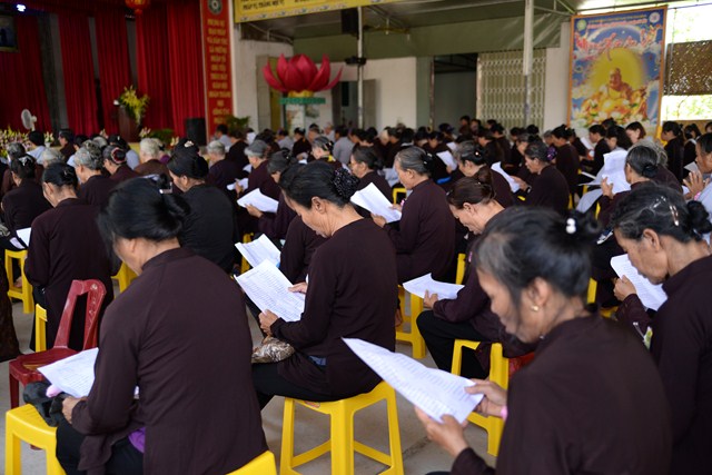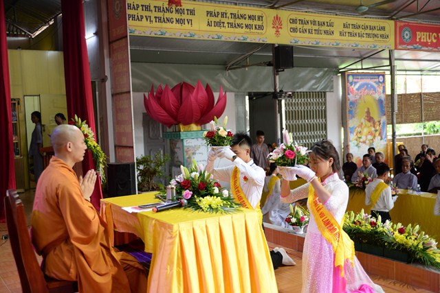 Trước khi kết thúc buổi lễ, Đại đức trụ trì đã cùng quý Phật tử đã làm lễ niêm hương, bạch Phật và tụng kinh Vu Lan báo hiếu cầu nguyện cho thế giới được hòa bình, chúng sinh an lạc, cầu nguyện cho cha mẹ hiện tiền được phúc thọ tăng long, cầu nguyện cho cửu huyền thất tổ, các anh hùng, liệt sỹ, chiến sỹ trận vong, đồng bào tử nạn đã quá vãng được sinh về cảnh giới lành.