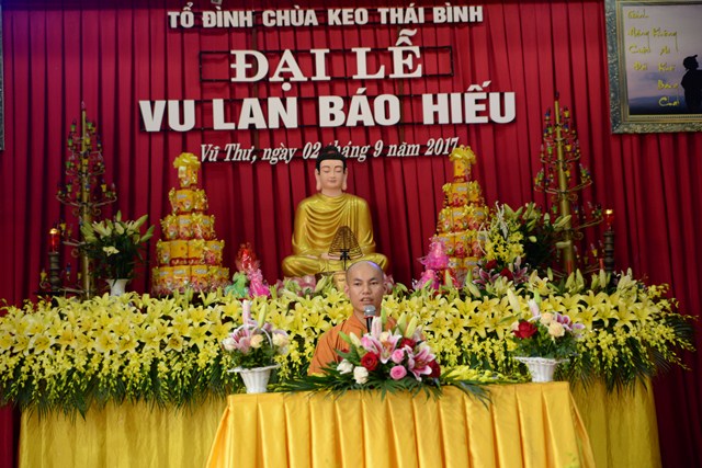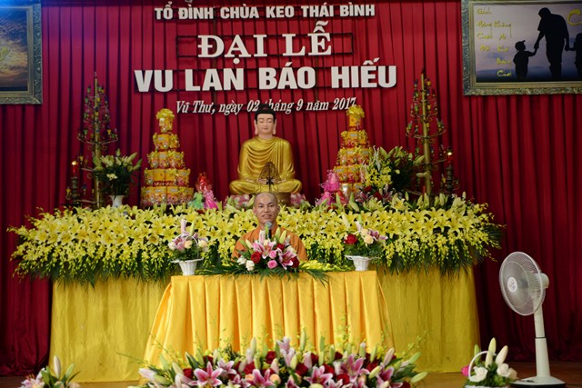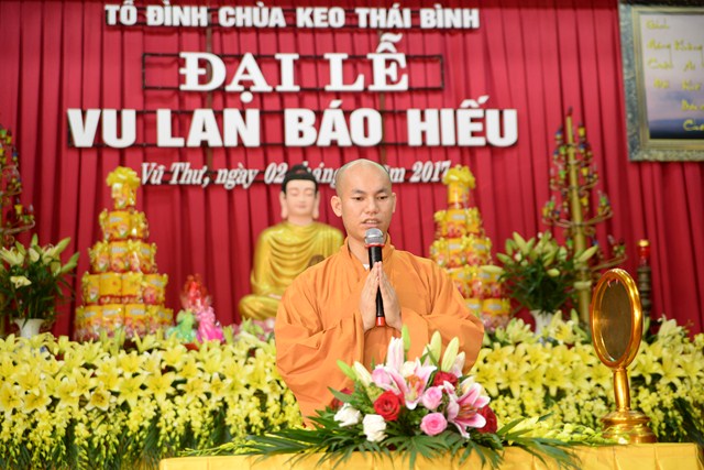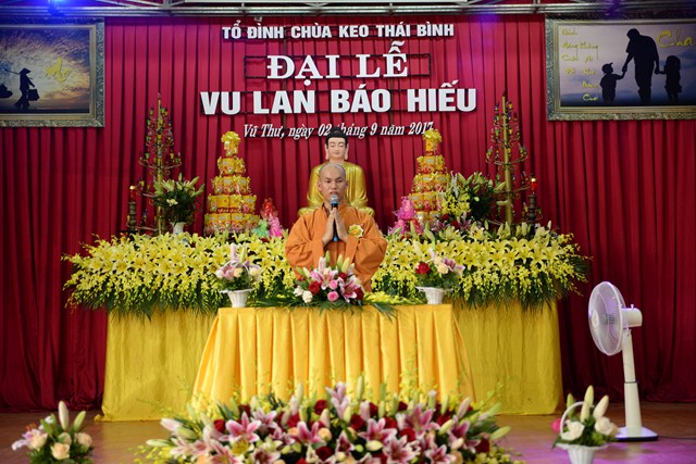 Nhân dịp này, đại đức Thích Thanh Quang – Trụ trì tổ đình chùa Keo đã chia sẻ tới quý Phật tử tham dự đại lễ về nguồn gốc, xuất xứ của lễ Vu lan và ý nghĩa của ngày lễ vu lan. Ngoài ra, Đại đức còn hướng dẫn quý Phật tử làm những việc thiện lành, thể hiện tâm hiếu hạnh của mình thông qua những hành động thiết thực nhất để kính dâng lên ông bà cha mẹ hiện tiền. Đồng thời, hướng ông bà cha mẹ quy y Tam Bảo, tin kính Tam Bảo, thực hành lời Phật dạy để ông bà cha mẹ có một cuộc sống ý nghĩa lúc tuổi già, sống vui, sống khỏe bên con cháu.