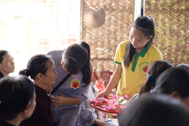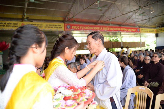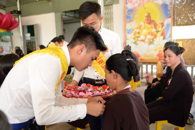 Một nghi thức rất quan trong, không thể thiếu được trong mỗi buổi lễ Vu Lan. Đó là nghi lễ “ Bông Hồng Cài Áo”. Đây cũng là chính là linh hồn của buổi lễ, là thời khắc xúc động và ý nghĩa nhất trong đại lễ vu lan. Nghi thức này do Hòa Thượng Thích Nhất Hạnh khởi xướng vào những năm của thập niên 1960: “Nếu anh còn mẹ, anh sẽ được cài một bông hoa màu hồng trên áo, và anh sẽ tự hào được còn mẹ. Còn nếu anh mất mẹ, anh sẽ được cài trên áo một bông hoa trắng. Người được hoa trắng sẽ thấy xót xa, nhớ thương không quên mẹ, dù Người đã khuất. Người được hoa hồng sẽ thấy sung sướng nhớ rằng mình còn mẹ, và sẽ cố gắng để làm vui lòng mẹ, kẻo một mai người khuất núi có khóc than cũng không còn kịp nữa”. Nhưng dù là cài trên ngực mình bông hồng màu nào đi chăng nữa thì cha mẹ vẫn luôn hiện hữu trong tâm trí của mỗi chúng ta.