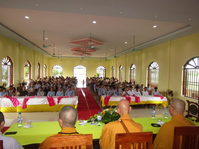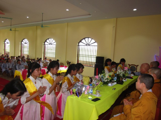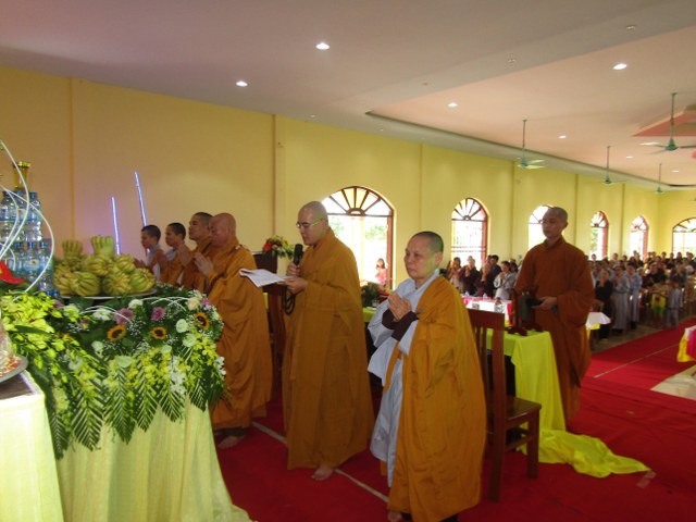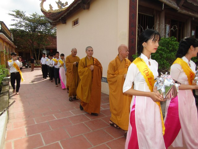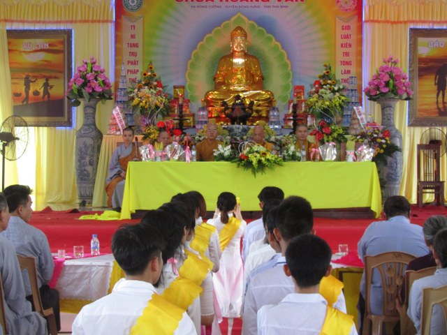 TT.Thích Thanh Định, Phó ban Thường trực BTS PG tỉnh Thái Bình chứng minh buổi lễ. Ông Nguyễn Hữu Hưởng, Chủ tịch UBND xã Đông Cường, đại diện chính quyền thôn sở tại đã tới dự và động viên chương trình.