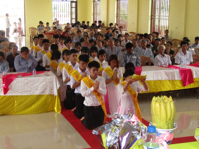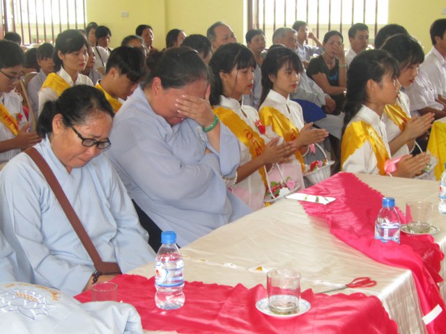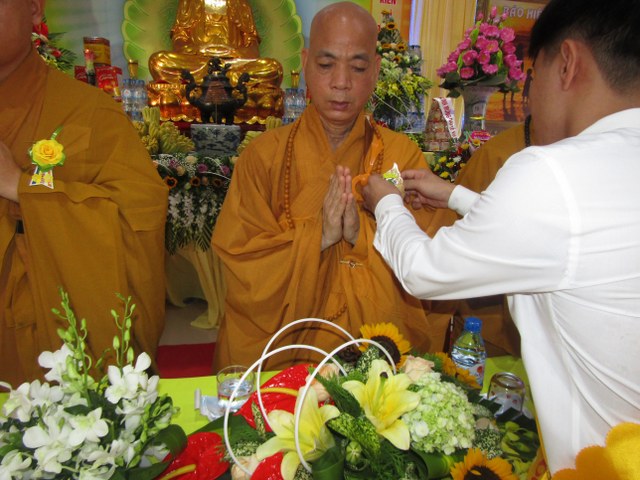 Toàn thể đại chúng vô cùng xúc động khi nghe diễn đọc ý nghĩa cài hoa hồng và hoài niệm về những ngày thơ bé bên cha mẹ. Sau đó, các bạn trẻ đã cài hoa hồng kính dâng chư tôn đức, tặng quý vị khách quý cùng nhân dân Phật tử trong niềm cảm thương dâng trào về người cha, người mẹ khả kính.