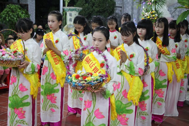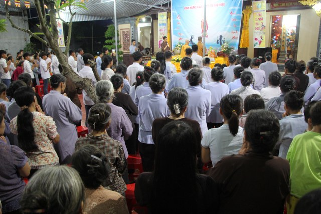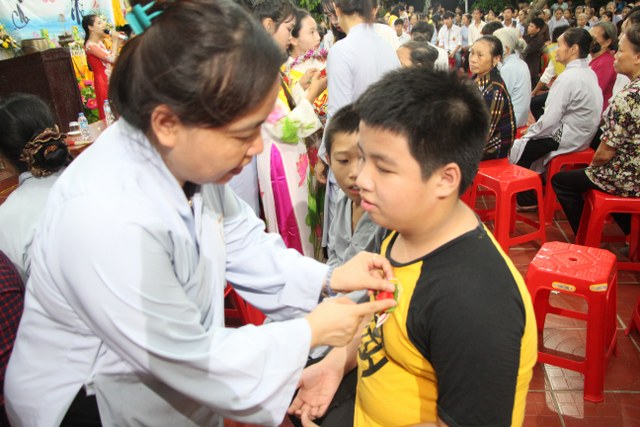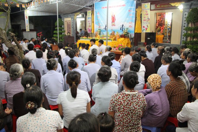 TT.Thích Thanh Định, Phó ban Thường trực BTS PG tỉnh Thái Bình cùng chư Tăng chùa Từ Xuyên chứng minh buổi lễ cùng đông đảo Phật tử, bà con nhân dân trong và ngoài thôn về dự lễ.