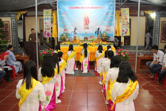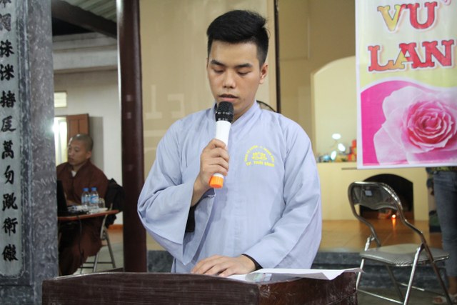 Sau khi nạp thụ pháp y do các em thanh niên Phật tử chùa Hưng Long dâng cúng, TT.Thích Thanh Định đã có đôi lời đạo từ với toàn thể đạo tràng trong ngày lễ Vu Lan. Thượng tọa đã giải thích nguồn gốc ngày lễ Vu Lan. Từ sự tích của ngài Mục Kiền Liên muốn cứu mẹ mình thoát khổ địa ngục, cúng dàng chư Tăng sau ngày tự tứ, mãn hạ an cư, nương sức chú nguyện của các Thầy Tỳ – kheo để báo hiếu cho mẹ, quý Phật tử đã hiểu thêm ý nghĩa của ngày lễ tự tứ an cư, thế nào là cầu siêu, báo hiếu đúng pháp. Thượng tọa nhấn mạnh: “Là người con Phật, chúng ta cần biết báo ơn và đền ơn. Mỗi ngày chúng ta cần biết làm tròn chữ hiếu chứ không chỉ riêng trong mùa Vu Lan. Sự báo hiếu cha mẹ thù thắng nhất là hướng dẫn cha mẹ tu học theo Chính pháp, quy y Tam Bảo; bản thân biết bố thí, cúng dường để hồi hướng công đức lành cho cha mẹ”.