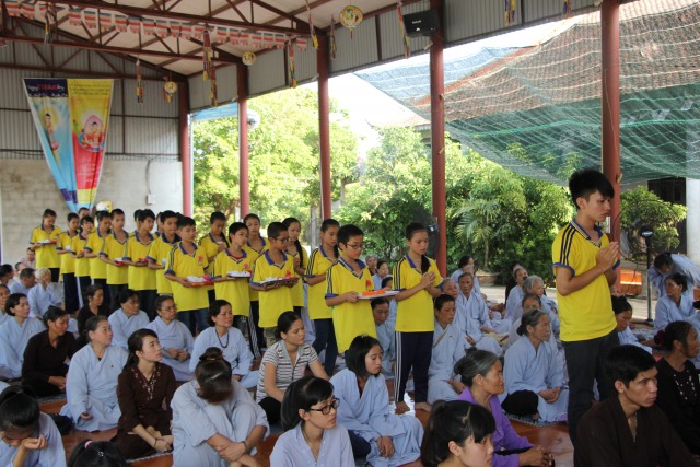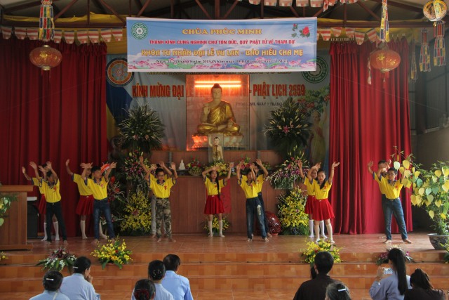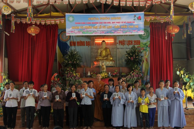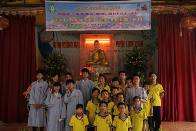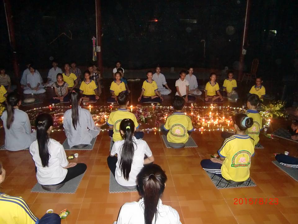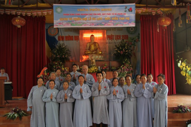Trong hai ngày 09-10/07/Ất Mùi (22-23/08/2015), các Phật tử về chùa tụng kinh Vu Lan – Báo Hiếu, nghe giảng về công ơn cha mẹ, dự lễ quy y Tam Bảo, lễ cài hoa hồng. Buổi tối 23/08, các bạn trẻ CLB TTNPT chùa Phúc Minh đã tổ chức một đêm tri ân – thiền trà hết sức đầm ấm tưởng nhớ ông bà, tổ tiên.