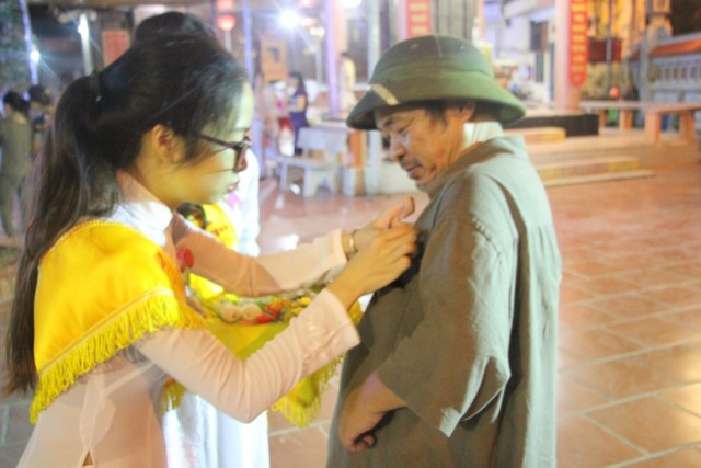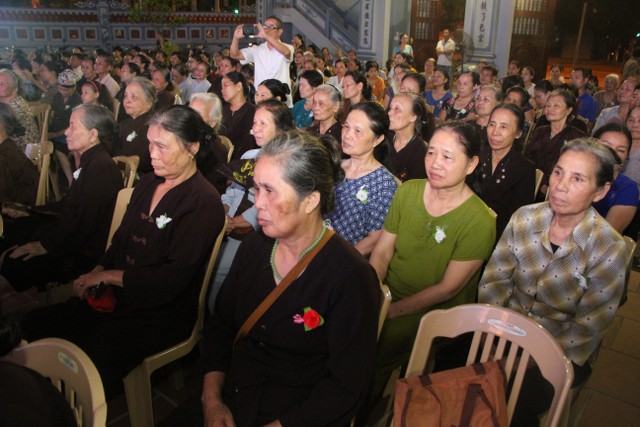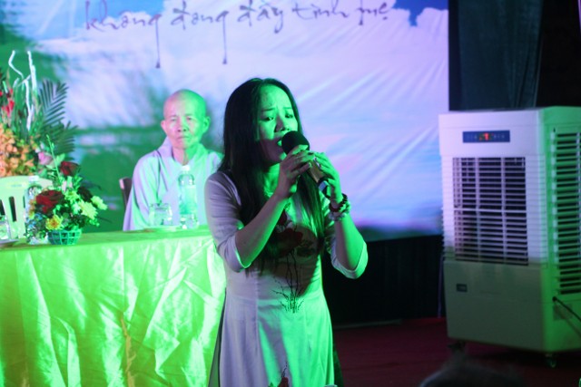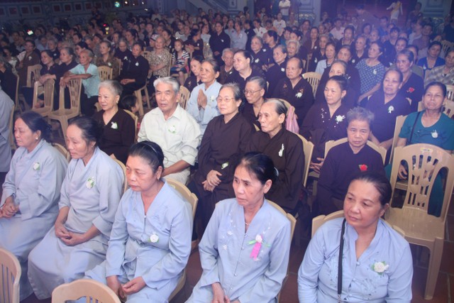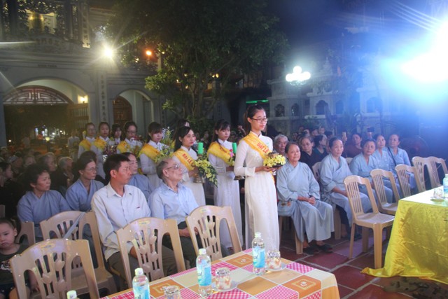 Toàn thể đại chúng vô cùng xúc động khi nghe diễn đọc ý nghĩa cài hoa hồng và hoài niệm về những ngày thơ bé bên cha mẹ. Sau đó, các bạn trẻ đã cài hoa hồng kính dâng chư tôn đức, tặng quý vị khách quý cùng nhân dân Phật tử trong niềm cảm thương dâng trào về người cha, người mẹ khả kính.