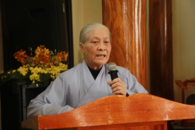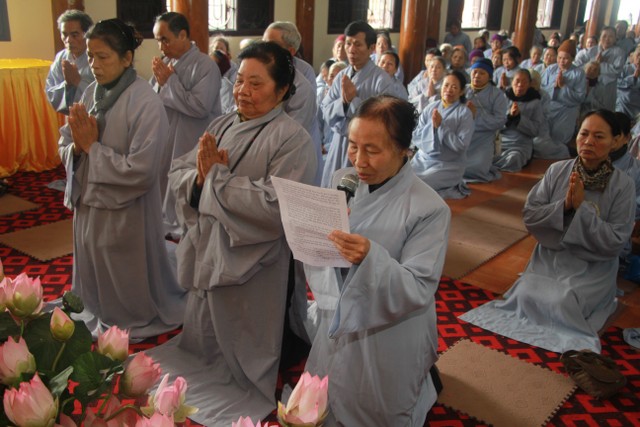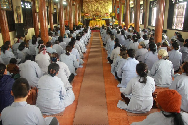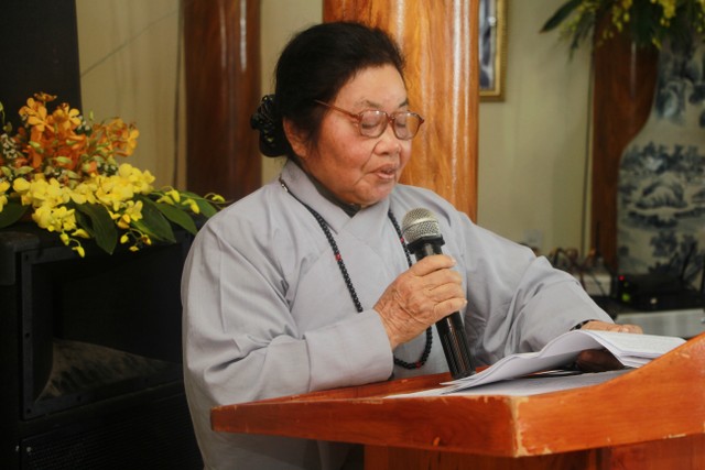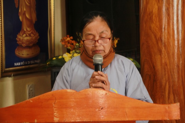 Phật tử Ngô Thị Thảo, thay mặt cho ban tổ chức đạo tràng đọc báo cáo tổng kết, nêu rõ đặc điểm, tình hình; các hoạt động tu tập, Phật sự, từ thiện đã làm trong năm qua. Theo đó, trong năm Bính Thân, đạo tràng đã duy trì các khóa tu Tịnh độ bốn ngày/tháng ngày, khóa tu dành cho người khuyết tật, khóa tu bát quan trai, Bồ tát giới; tổ tụng kinh duy trì đều đặn, tổ hậu cầu đảm bảo vệ sinh, an toàn thực phẩm; tổ bảo vệ duy trì an ninh, trật tự, tổ vệ sinh giữ gìn cảnh quan chùa, tổ trang trí luôn cắm hoa tươi phục vụ các Phật sự…