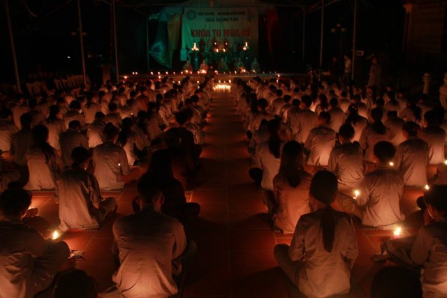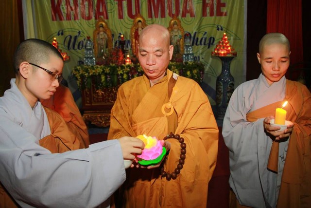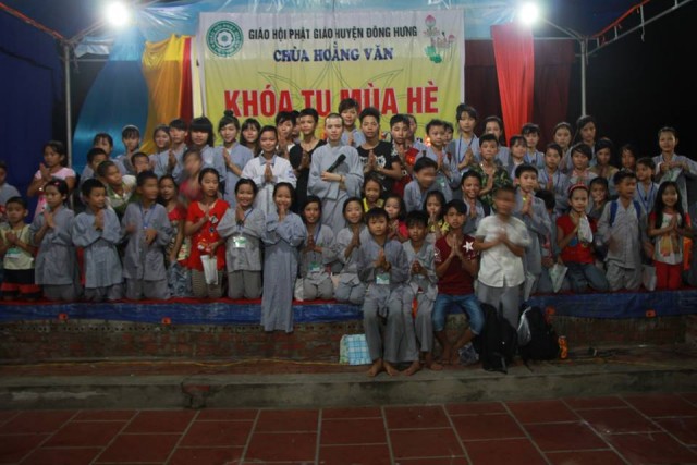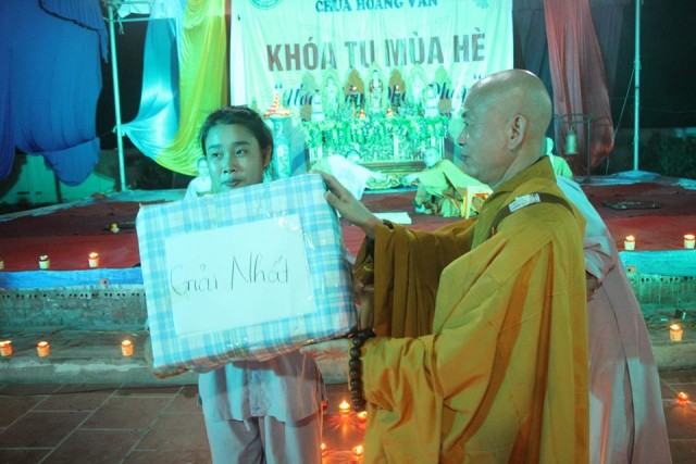 Tối cùng ngày, tại chùa Hoằng Văn đã diễn ra bế mạc và Đêm hoa đăng tri ân công sinh thành dưỡng dục của hai đấng song thân với sự tham gia của các em khóa sinh đang tham dự khóa tu mùa hè “Ươm mầm Phật pháp” lần thứ hai và đại diện các bậc phụ huynh.