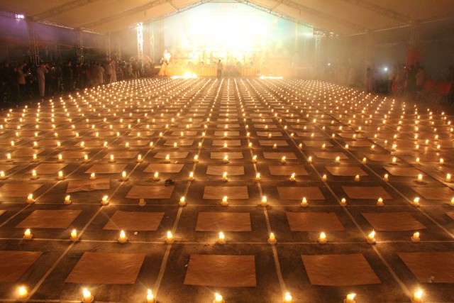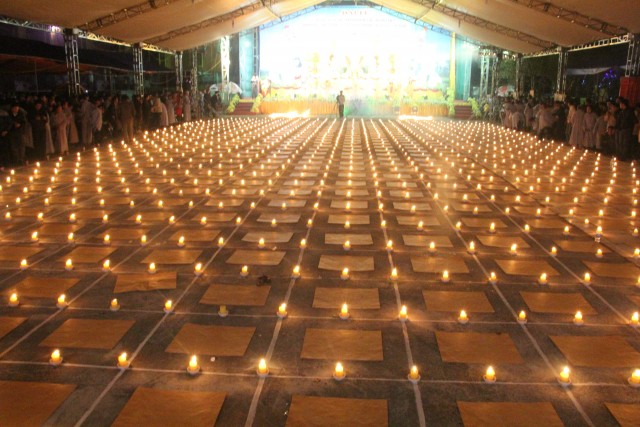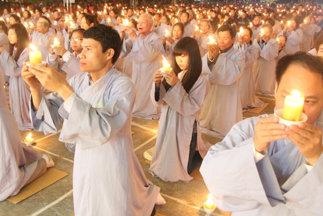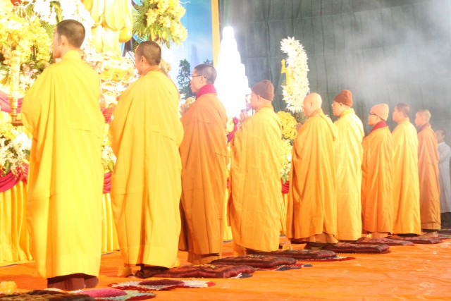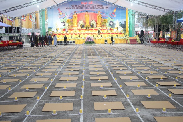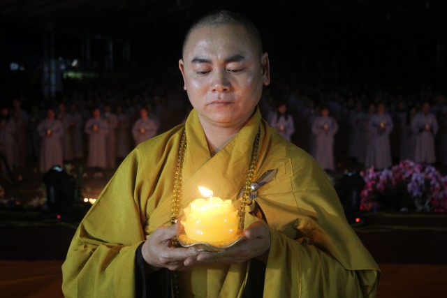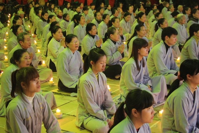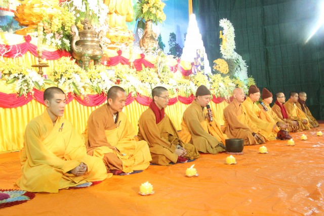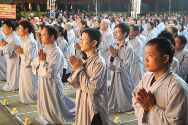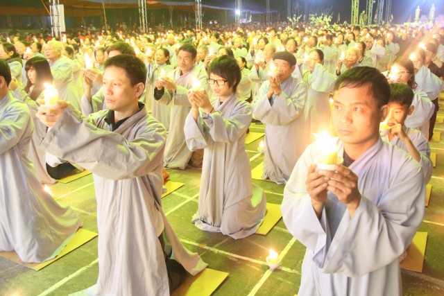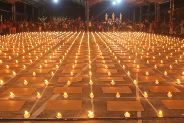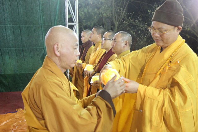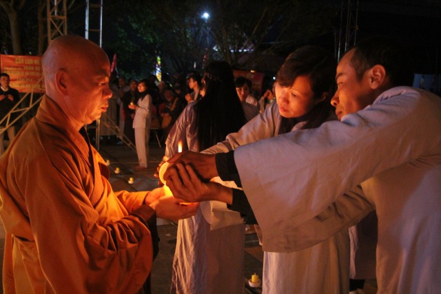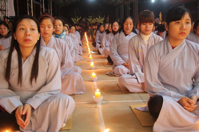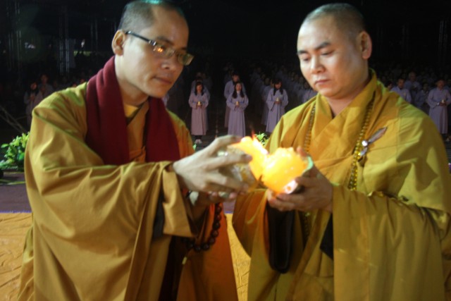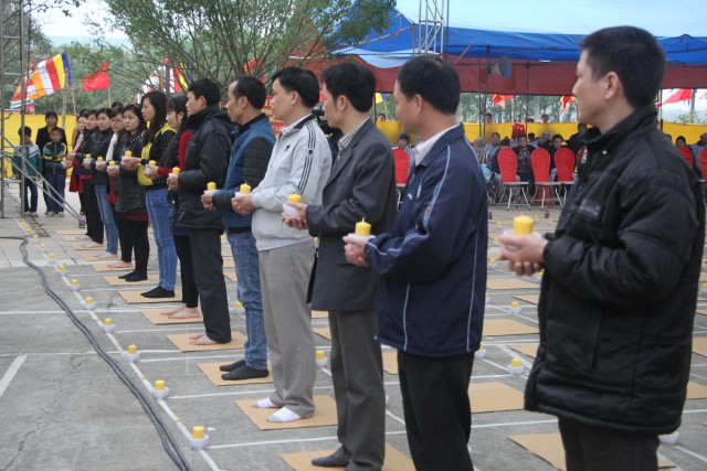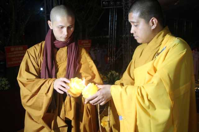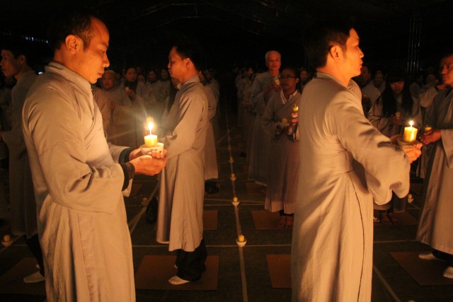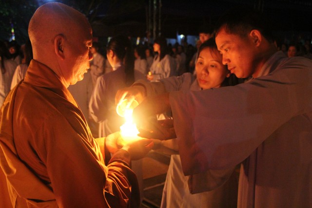 Tiếp đến là các nghi thức niêm hương bạch Phật và truyền đăng. Ánh nến từ bàn thờ Phật được TT.Thích Thanh Định đón nhận và truyền trao cho chư tôn đức rồi lần lượt lan tỏa đến quý Phật tử. Một vùng ánh nến lung linh, huyền ảo tỏa sáng đất trời Phương La. Đó là ánh sáng trí tuệ của chư Phật được truyền thừa từ câu thánh hiệu Phật A Di Đà. Ánh sáng tiếp nối ánh sáng, niềm tin tiếp nối niềm tin. Những ngọn nến tuy nhỏ bé nhưng đã làm ấm lại bao tâm hồn lạnh giá đang đắm chìm trong vô minh, đau khổ, phiền não.