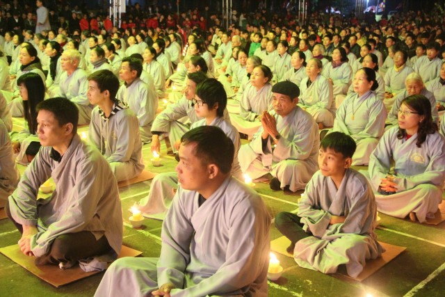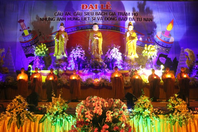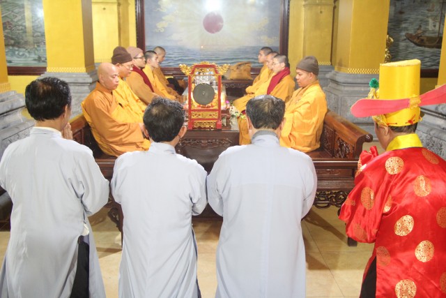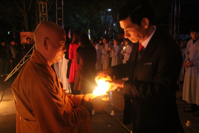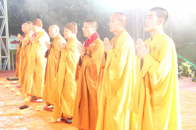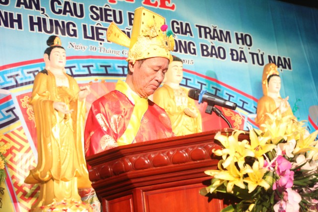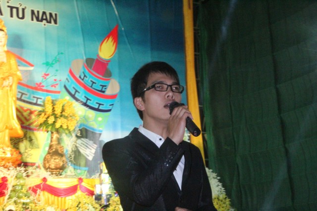 Đúng 19h00, tiếng niệm Phật được cất cao cung nghinh chư tôn đức cùng quý vị quan khách quang lâm lễ đài. Nghệ nhân Trần Văn Sen, thay mặt cho ban tổ chức phát biểu khai mạc.