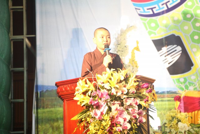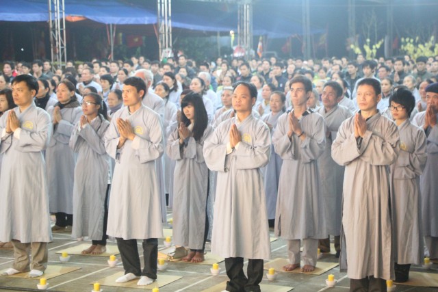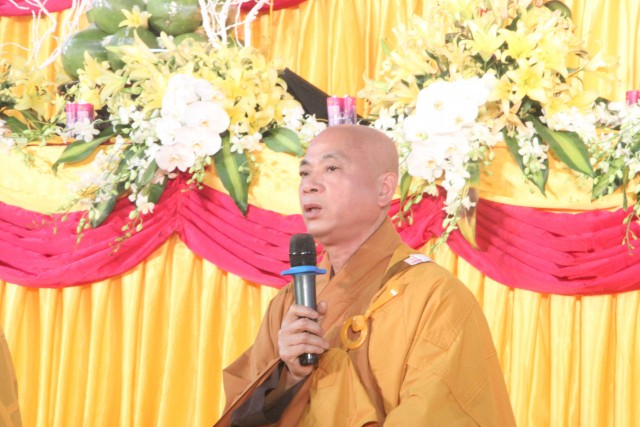 Trong âm hưởng thanh thoát cùng không khí trang nghiêm, thắm tình đạo vị của đêm hội, đại chúng đã được lắng nghe những lời đạo từ của TT.Thích Thanh Định gửi đến toàn thể chúng hội. Thượng tọa nhấn mạnh: “Hoa đăng có nghĩa là thắp nến, truyền đăng, tức là truyền trao ánh sáng trí tuệ của chư Phật cho chúng sinh để xóa đi vô minh, phiền não, diệt trừ tham lam, sân hận, si mê. Người con Phật cần lấy trí tuệ làm sự nghiệp. Muốn vậy mọi người cần sống từ bi, hỷ xả, yêu thương nhau, quay về nương tựa Phật pháp, cùng nhau xây dựng một xã hội an lạc, hạnh phúc. Chúng ta cần quy y Tam Bảo, học theo lời đức Phật dạy và tinh tấn trên mọi bước đường tu học nhằm đem lại lợi ích cho bản thân, gia đình, xã hội và khắp pháp giới chúng sinh”.