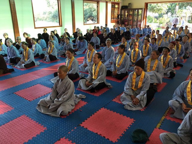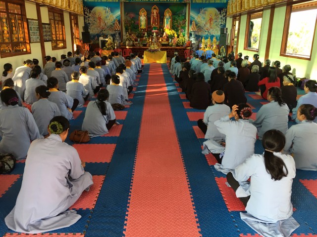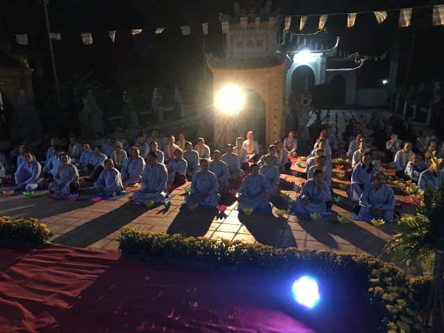 Đúng 19g30, dưới sự chứng minh thanh tịnh của chư tôn Thượng tọa, Đại đức Tăng, Ni và sự hiện diện rất mực trang nghiêm, thành kính của quý Phật tử, đại chúng đã lắng lòng thanh tịnh niêm hương bạch Phật, xưng tán hồng danh đức Từ phụ A Di Đà, cầu nguyện cho đêm hội được thập phần viên mãn.