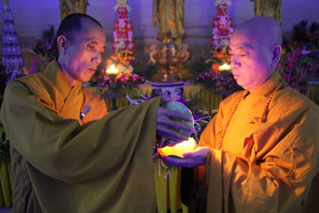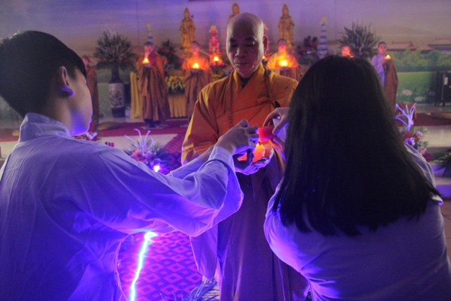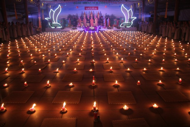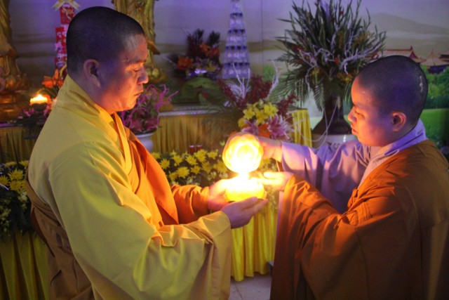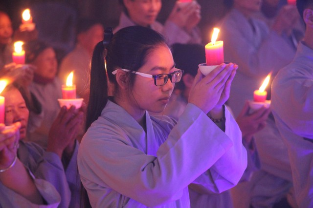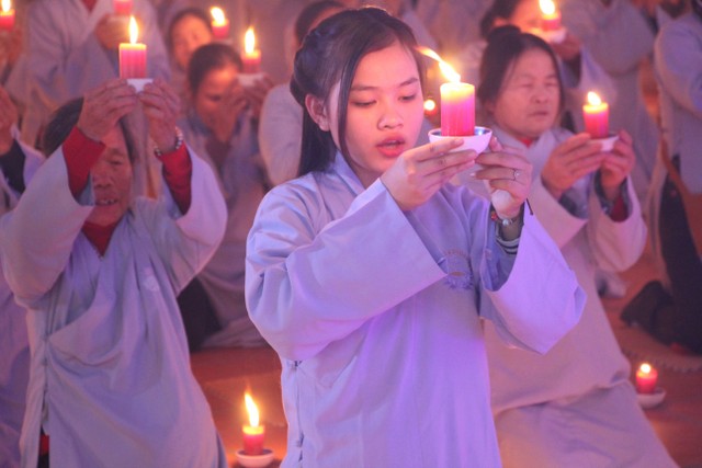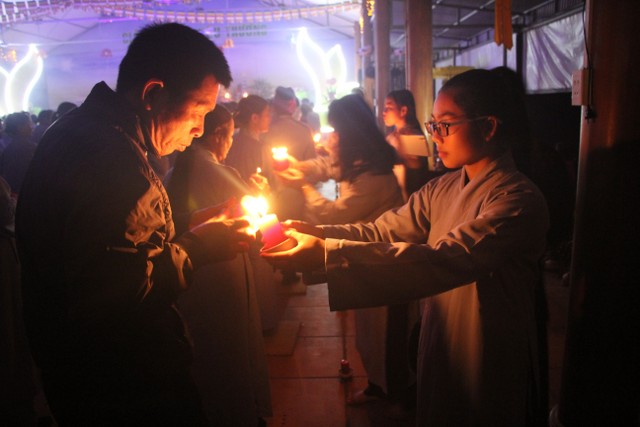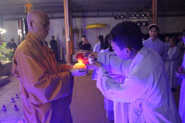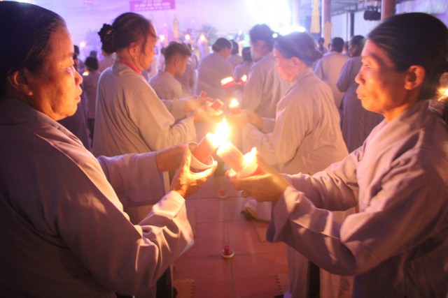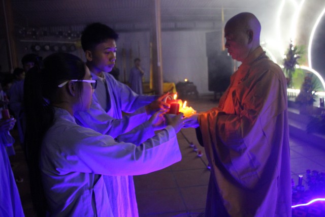 Phần quan trọng nhất trong đêm hội là nghi thức truyền đăng, mang ý nghĩa “truyền đăng tục diệm”, cúng dường đèn hoa lên đức Phật. Ánh sáng lung linh huyền ảo từ ngọn nến trên tay Thượng tọa chứng minh được thắp sáng từ bàn thờ tôn tượng Đức Phật A Di Đà được lan tỏa đến chư tôn đức Tăng ni và hàng Phật tử. Và ngọn nến lung linh huyền bí ấy cứ tiếp tục truyền đi, một vùng sáng đã dần dần lan tỏa… Ánh sáng thiêng liêng ấy là tượng trưng cho trí tuệ của chư Phật soi vào đời tăm tối, là ánh sáng của sự cảm thông những nỗi khổ niềm đau, là ánh sáng của chân lý đưa chúng sinh về bến bờ giác ngộ.