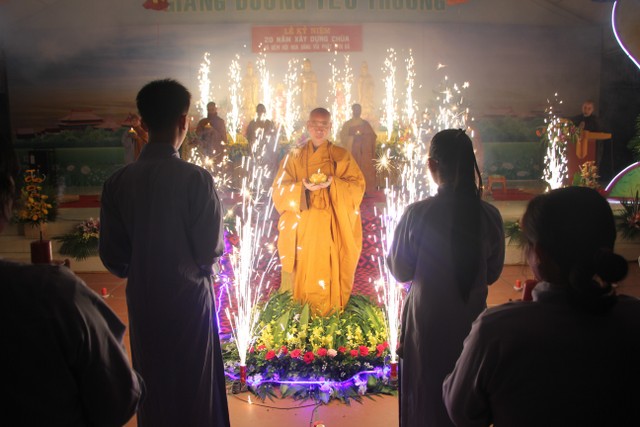 Đến chứng minh đêm hội hoa đăng có: TT.Thích Thanh Định, UV HĐTS TƯGH, Phó ban Thường trực BTS PG tỉnh Thái Bình, ĐĐ.Thích Nhuận Tâm, UV BTS PG tỉnh, Phó Thư ký BTS PG TP.Thái Bình; Chư tôn đức Tăng, Ni trụ trì các chùa, tự viện trong đã về dự.