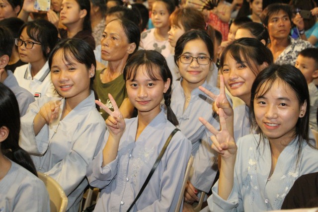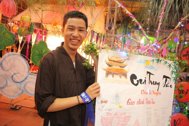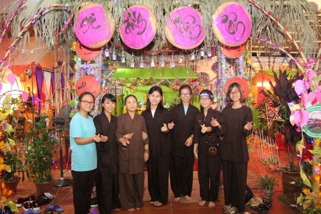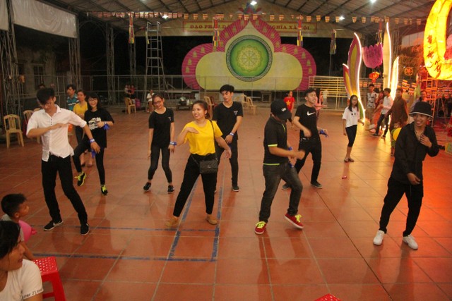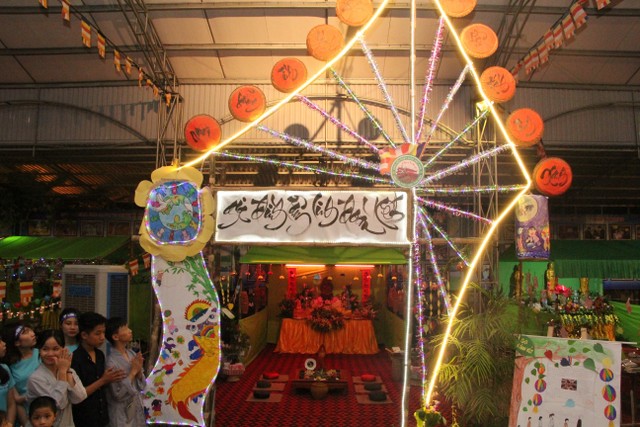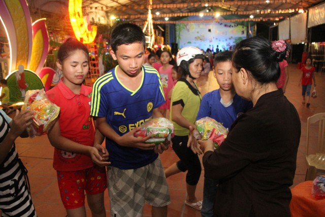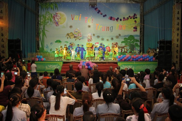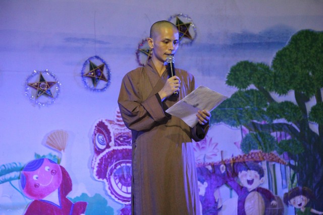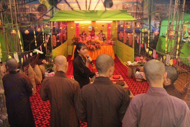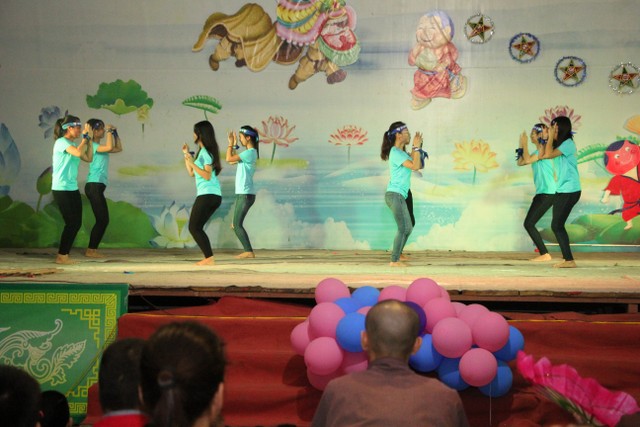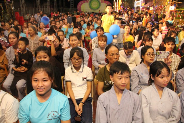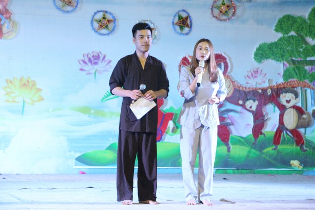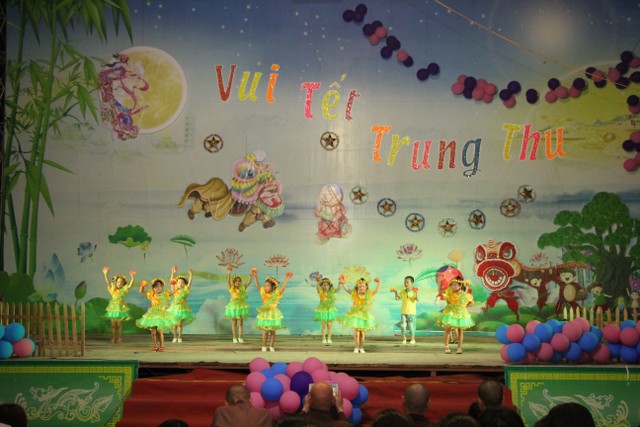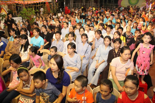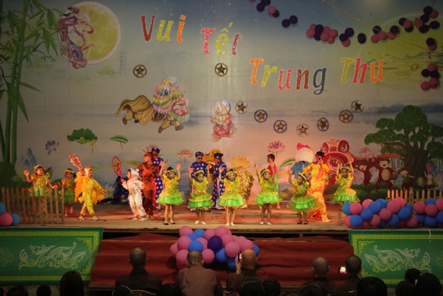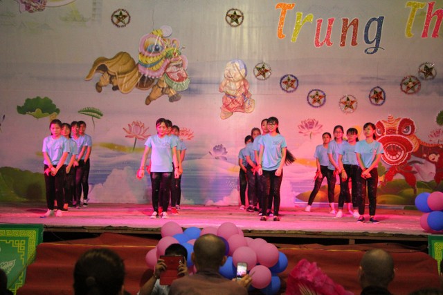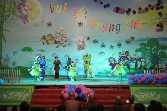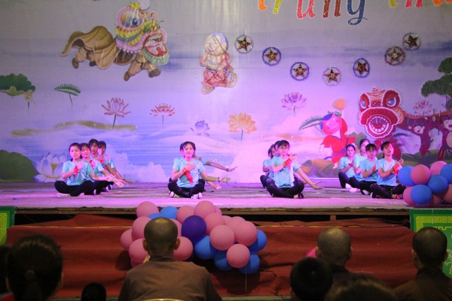 Trong đêm trung thu, các bạn thanh thiếu niên và các em nhỏ đã dâng lời ca tiếng hát, điệu múa của mình cúng dường Tam Bảo, tạo ra đêm nhạc nhiều màu sắc. Sau đó, chư Tôn đức đã làm lễ phá cỗ và phát quà cho các em nhỏ. Hơn 20 tiết mục dàn dựng công phu của các bạn nhỏ lần lượt được trình diễn, dưới sự cổ vũ cũng như động viên vô cùng to lớn từ quý khán giả, đã đem lại một “Đêm hội trăng rằm” vô cùng hấp dẫn, thắm đượm tình thương mà quý thầy cũng như phụ huynh dành cho thế hệ trẻ – chủ nhân tương lai của đất nước. Cuối chương trình, quý Thầy đã trao thưởng chương trình thi cắm trại, thi nấu ăn và phát quà cho các cháu về chùa dự đêm liên hoan.