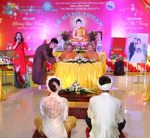 Tối ngày 10/04/2019 ( nhằm ngày 6/3/Kỷ Hợi), tại chùa Ứng Linh ( Thanh Bản), thôn Thanh Bản, xã Xuân Hòa, huyện Vũ Thư, tỉnh Thái Bình đã diễn ra lễ hằng thuận cho đôi thanh niên phật tử trẻ, tân lang: Hoàng Đại Vương (PD: Phúc Ngọc) 23 tuổi và tân nương: Ngô Thị Trang (PD: Bản Thức) 23 tuổi.