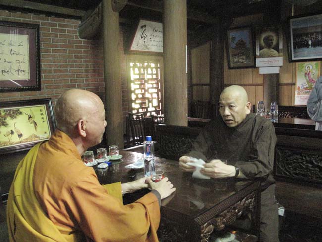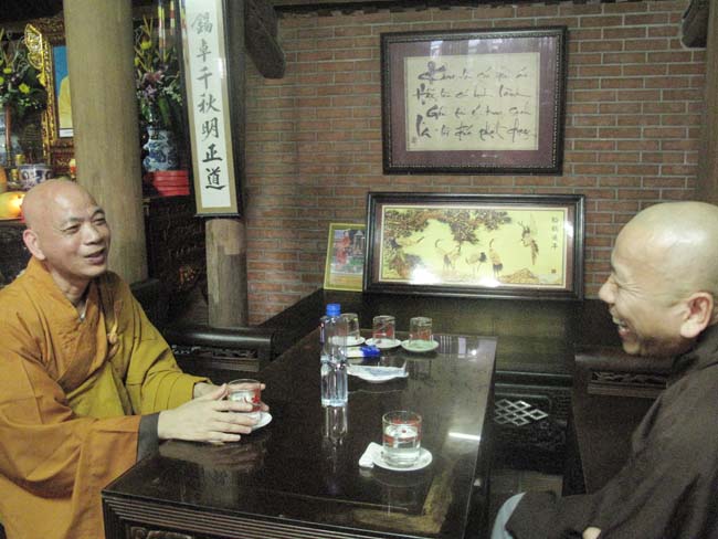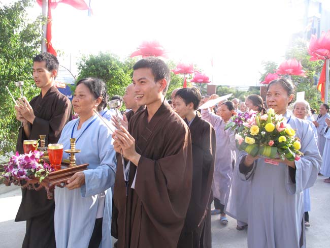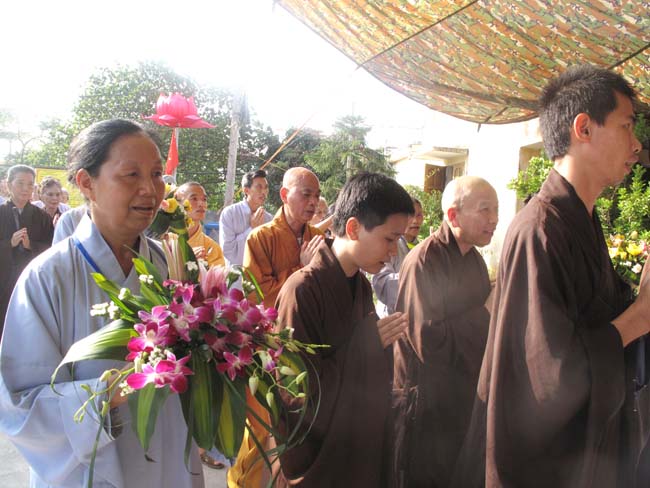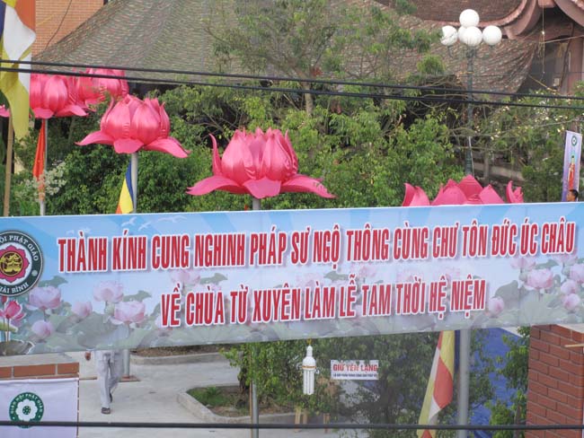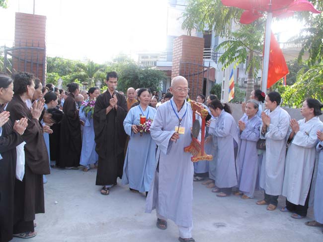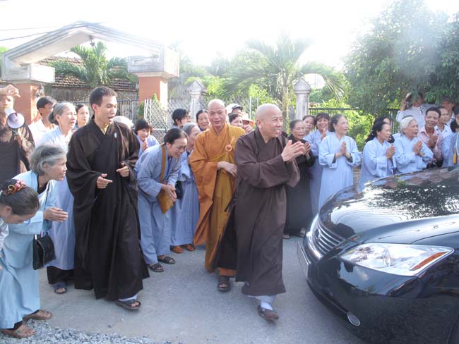Ra đón tiếp ngài Ngộ Thông có Đại đức Thích Thanh Định, trụ trì chùa Từ Xuyên, Phó ban thường trực Ban trị sự hội Phật giáo tỉnh Thái Bình cùng đông đảo Tăng Ni và Phật tử gần xa.