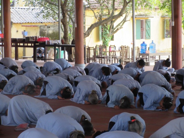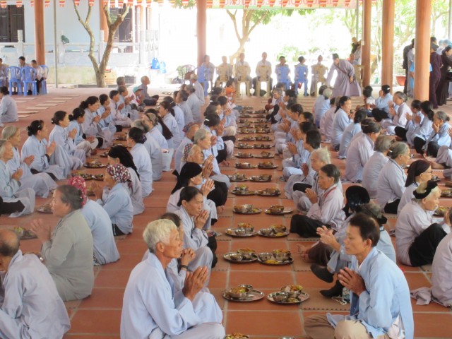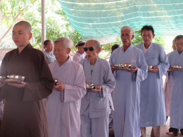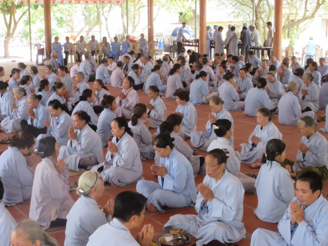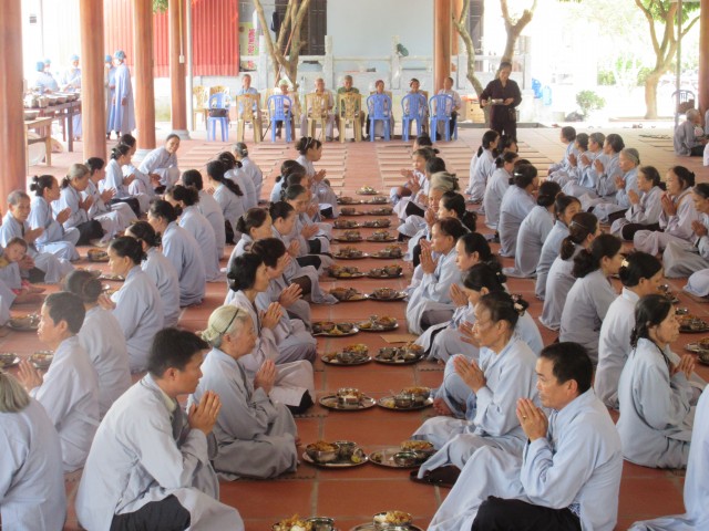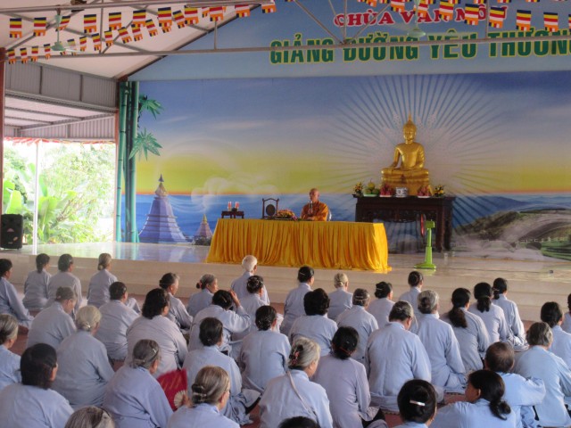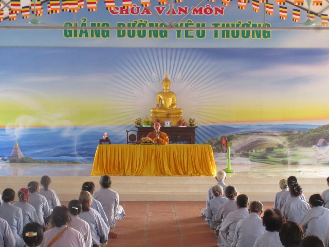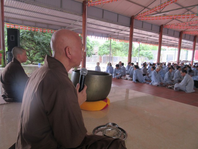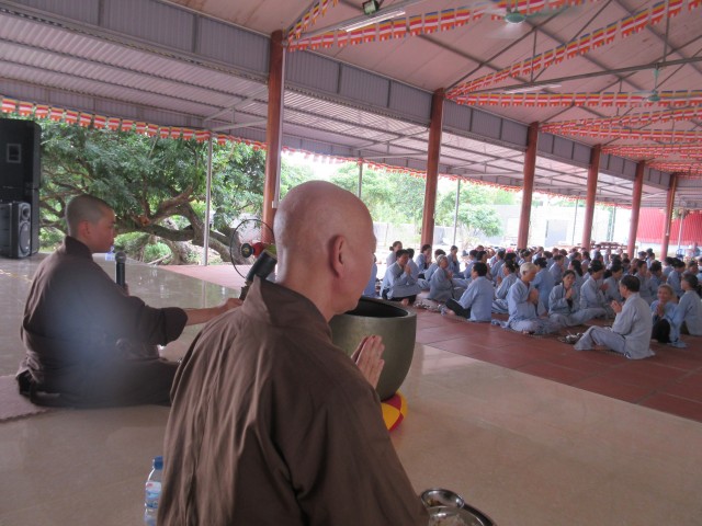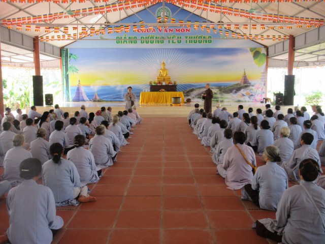 Trong thời khóa buổi sáng, đại chúng đã được lắng nghe Sư Bác Thích Nhuận Trí, Tăng sinh HVPGVN tại TP.Hà Nội chia sẻ về đề tài “Nguồn gốc của mê tín”. Từ tín ngưỡng dân gian, các hủ tục, lòng tin mê mờ mà nhiều người dân chúng ta tìm đến bói toán, đốt vàng mã, sát sinh để cúng lễ… Đó là việc làm trái với quy luật nhân quả của đạo Phật. Trong một giờ đồng hồ ngắn ngủi, quý Phật tử đã phần nào tác hại của mê tín, biết tin theo nhân quả, tin vào bản thân mình để từ đó biết tu tập, chuyển hóa phiền não, bất an, dẹp tan ba độc để xây dựng cuộc sống văn minh, có niềm tin với Phật pháp. Sau đó chư Tăng đã hướng dẫn quý Phật tử công phu niệm Phật, kinh hành khất thực.
