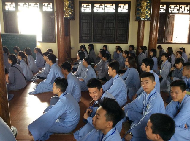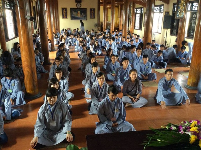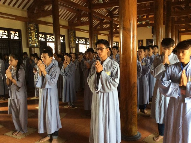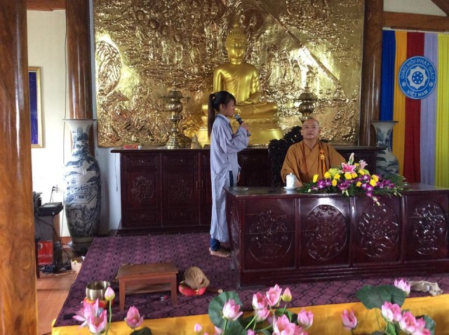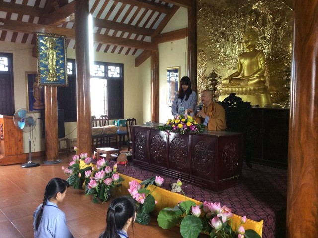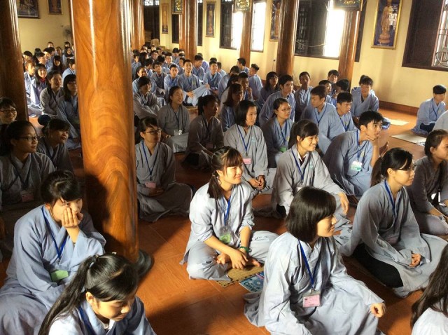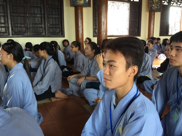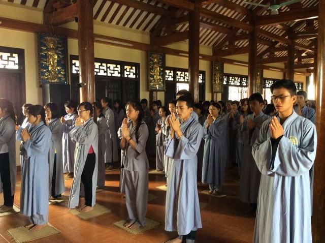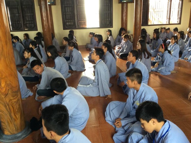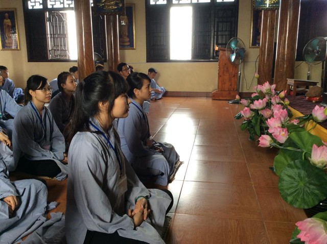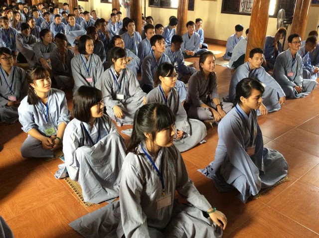 Trong thời khóa buổi sáng, các bạn được học kinh Pháp cú, dự nghe thời pháp từ ĐĐ.Thích Quảng Hiếu, Giáo thọ tu viện Giác Hải (Vạn Ninh, Khánh Hòa), Phó ban tổ chức khóa tu với chủ đề “Hành trang đạo đức vào đời”. Sau đó là thời thực tập thiền và sám Pháp địa xúc.