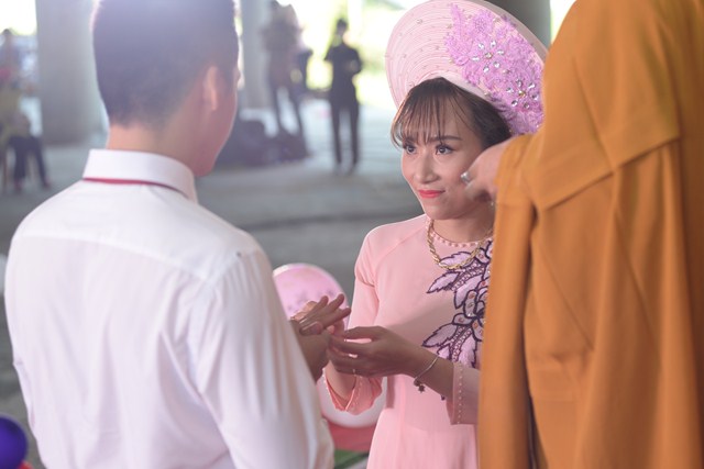 Trước khi đại đức chứng minh trao đôi nhẫn cưới cho đôi bạn trẻ để đôi bạn tự trao nhẫn cho nhau, đại đức đã làm lễ sái tịnh, chú nguyện vào đôi nhẫn cưới, đồng thời giảng cho đôi tân lang – tân nương hiểu về ý nghĩa của chiếc nhẫn cũng như ý nghĩa của chữ “Nhẫn” đối với hạnh phúc trong gia đình. “Nhẫn” ở đây là sự nhẫn nhịn, vợ chồng phải biết nhường nhịn nhau, nhẫn nhịn nhau và tôn trọng nhau. “Nhẫn” ở đây còn là sự tu dưỡng đạo đức và tu dưỡng thân tâm. Gia đình có êm ấm, có hòa thuận được hay không, phần lớn là do sự nhẫn nhịn quyết định.