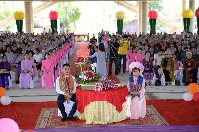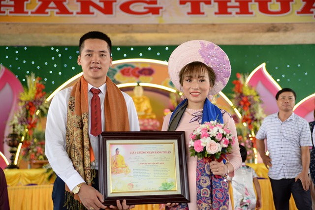 Quang lâm và chứng minh buổi lễ có sự hiện diện của  Đại đức Thích Thiện Quang – Trụ trì chùa Thượng Điền, xã Tam Quang, huyện Vũ Thư, tỉnh Thái Bình, trưởng BTC lễ hằng thuận, Đại đức Thích Thanh Nghĩa – Chư tăng tổ đình Vọng Cung, thành phố Nam Định, chư tôn thiền đức Tăng Ni trong và ngoài tỉnh Thái Bình, cùng với đó là sự hiện diện của cha mẹ thân sinh ra đôi tân lang, tân nương, hai bên gia đình nội ngoại, bạn bè, thân bằng quyền thuộc và khoảng gần 700 Phật tử đang sinh hoạt , tu học tại chùa Thượng Điền.