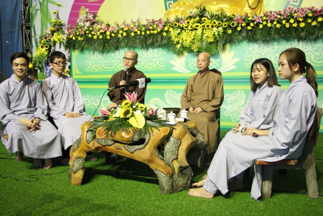 Tối cùng ngày, các bạn được giao lưu cùng bốn Phật tử: Thảo Duyên, Thùy Dương, ca sỹ Trần Duy Hưng, Minh Phương. Qua những câu chuyện về nhân duyên đến với Phật pháp, các bạn đã có hiểu thêm những giá trị đạo Phật mang lại cho cuộc đời cũng như con đường lập nghiệp song hành với tu tập trong đời sống của các khách mời.