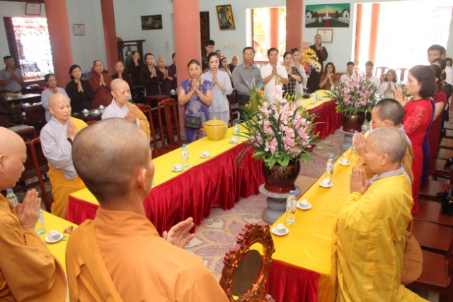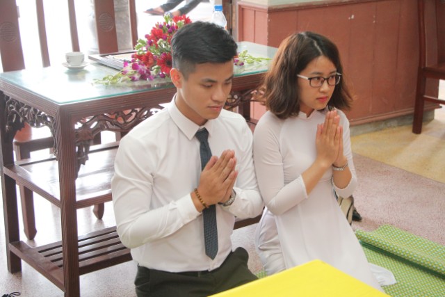 Kết thúc buổi lễ, đại diện hai bên gia đình đã làm lễ tạ ơn Tam Bảo, chư tôn đức chứng minh gia hộ cho cuộc sống gia đình đôi tân hôn được bình an, hạnh phúc. Quý Thầy không quên nhắc nhở: “Các con hãy ghi nhớ những lời quý Thầy đã chỉ bảo ngày hôm nay, lấy đó làm phương châm sống, cư xử với nhau theo đúng bổn phận của người con Phật và giữ gìn nề nếp gia phong. Đó cũng là mong ước lớn nhất của các bậc làm cha, làm mẹ”.