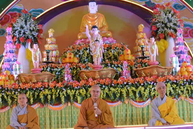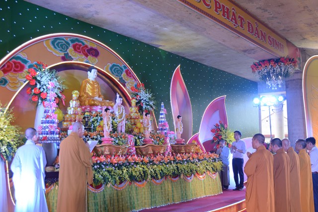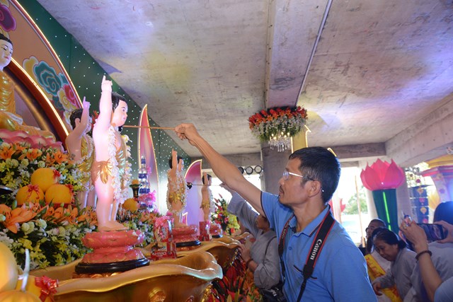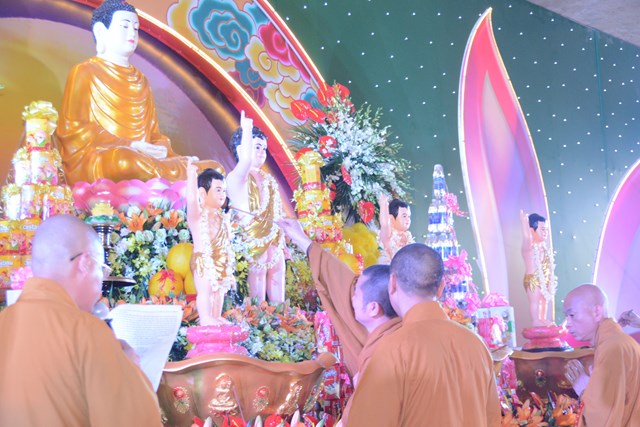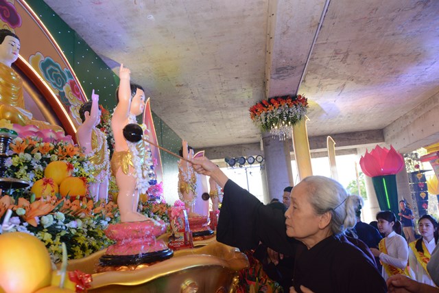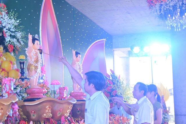 Trước khi kết thúc buổi lễ, Chư tôn đức Tăng Ni, chính quyền, bà con Phật tử và nhân dân địa phương đã làm lễ dâng hương và lễ tắm Phật theo nghi thức truyền thống trên tinh thần của người con Phật trong không khí hoan hỷ, ấm tình đạo vị, dâng nén tâm hương thành kính nhất của mình lên đức Bản Sư Thích Ca Mâu Ni Phật nhân ngày khánh đản.