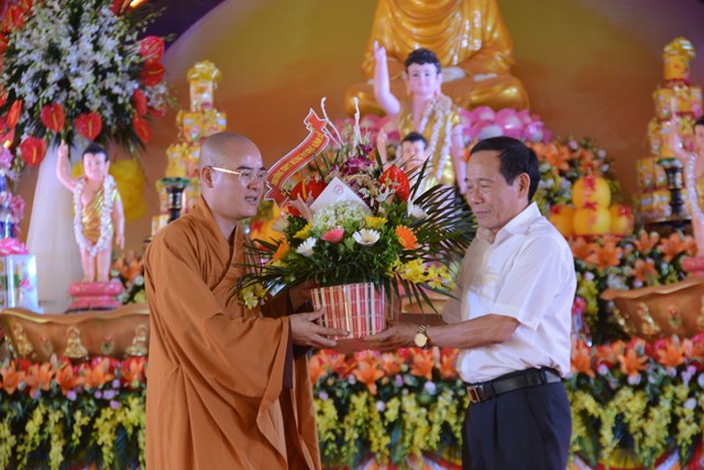 Thay mặt cho chính quyền địa phương, ông: Phạm Công Diện – Phó chủ tịch UBND huyện Vũ Thư, tỉnh Thái Bình đã lên phát biểu chúc mừng Phật đản PL. 2561 – DL. 2017. Trong bài phát biểu của mình, ông đã khẳng định lại vai trò của Phật giáo đối với sự phát triển xã hội. Đặc biệt là trong những năm vừa qua, đại đức Thích Thiện Quang – Trụ trì chùa Pháp Quang đã luôn phát huy đức tính cần cù, vì lợi lạc quần sinh, lấy thực tế để giáo hóa chúng sinh. Bằng ảnh hưởng của Phật giáo, đại đức đã góp phần cùng với chính quyền các cấp làm tốt các hoạt động từ thiện – xã hộ, tuyên truyền giáo lý Phật Đà tới các tầng lớp thanh thiếu niên trong huyện để các em trở thành những công dân tốt, có ích cho xã hội, cho Đất nước sau này. Nhân ngày lễ Phật đản ông đã thay mặt cho chính quyền huyện Vũ Thư ghi nhận và biểu dương những nỗ lực cố gắng của đại đức trụ trì cũng như các Phật tử chùa Pháp Quang đã góp phần quan trọng cùng Đảng ủy và nhân dân xã Tam Quang hoàn thành tốt các nhiệm vị chính trị mà Đảng và Nhà nước đã giao phó.