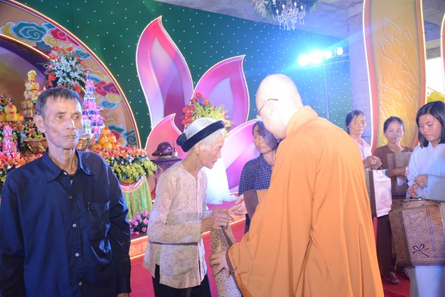 Nhân dịp này, Chư tăng và Phật tử chùa Pháp Quang đã trao 20 phần quà cho các gia đình có hoàn cảnh khó khăn, người già neo đơn, không nơi nương tựa và học sinh nghèo vượt khó thuộc xã Tam Quang, huyện Vũ Thư, tỉnh Thái Bình. Đây là những món quà để động viên, khích lệ tinh thần của bà con trong xã, giúp bà con vơi bớt phần nào những khó khăn trong cuộc sống. Đây cũng là hành động để cúng dàng lên đức Từ phụ Thích Ca nhân ngày đản sinh của Ngài.