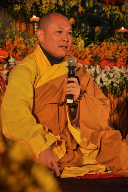 TT cũng giải thích về ý nghĩa của bốn chữ A Di Đà Phật có nghĩa là vô lượng quang và vô lượng thọ. Mỗi người nên phát huy trí tuệ của mình đó chính là vô lượng quang. Cống hiến cuộc đời mình phục vụ lợi ích an lạc cho chúng sinh, tên tuổi mình sống mãi trong lòng mọi người đó cũng chính là vô lượng thọ. Trí tuệ khác với thông minh. Có trí tuệ là người nhìn thấy rõ thực tướng của vũ trụ nhân sinh, hướng đến con đường giác ngộ giải thoát, luôn đem lại lợi ích và an vui cho chúng sanh. Còn thông minh lanh lợi của con người nếu bị tham sân si sai khiến sẽ đem lại nỗi sợ hãi và khổ đau cho nhân thế, chẳng hạn như con người đã vận dụng cái thông minh của mình, chế tạo các loại vũ khí giết người hàng loạt, đây chính là hậu quả của sự thông minh.