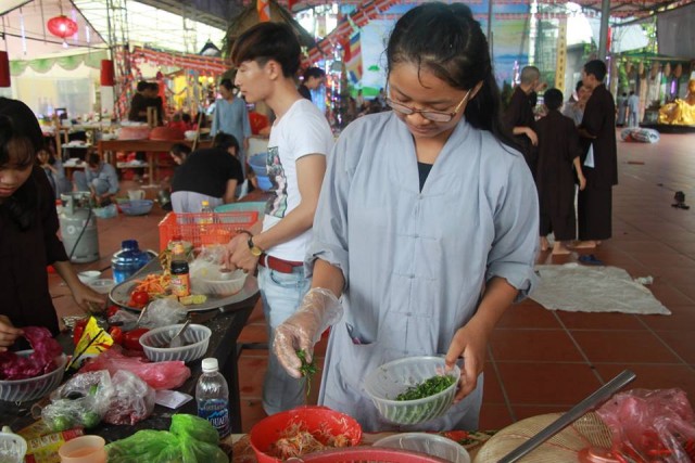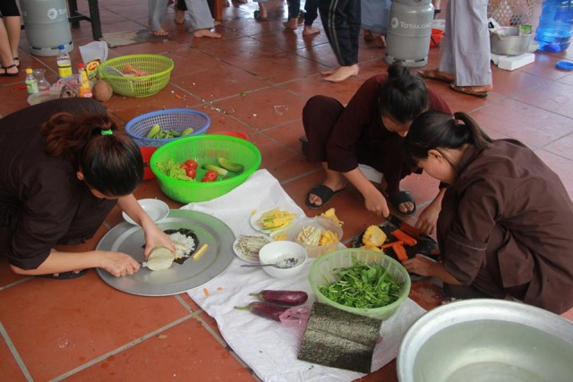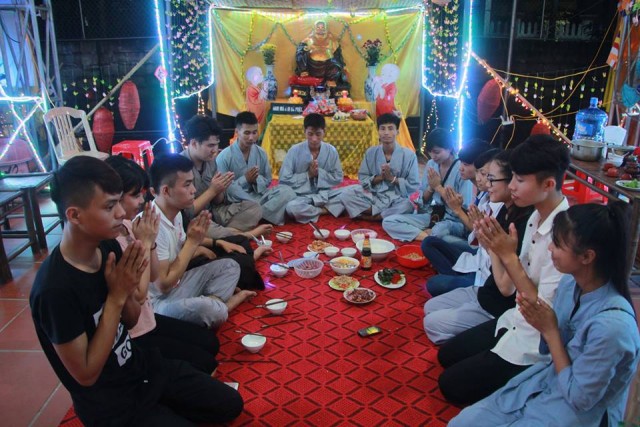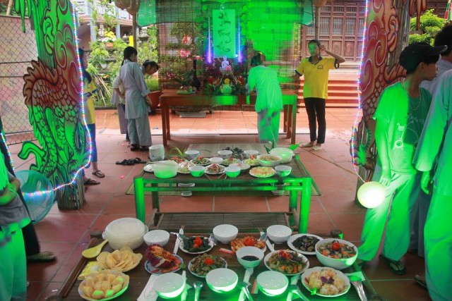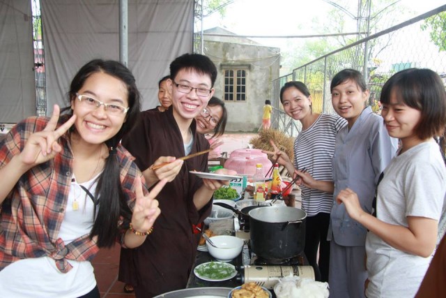 Đặc biệt, chiều ngày chủ nhật 11/09/2016, các bạn trẻ của năm gia đình tâm linh: Đoàn Kết (TP.Thái Bình), Bình An (Kiến Xương – Tiền Hải), Tâm Đức (Đại học Y Dược Thái Bình), Đông Hưng Xanh (Đông Hưng); Văn Môn và Phúc Minh đã tham gia hội thi nấu ăn “Mâm cơm cúng Phật”. Mỗi nhóm thiết kế và trình bày một mâm cơm chay dâng cúng Phật nhân ngày Tết thiếu nhi. Sau đó, các gia đình đã chào đón quý Thầy đến thăm, chấm điểm nấu ăn và cắm trại, thiền trà và chia sẻ giáo lý.