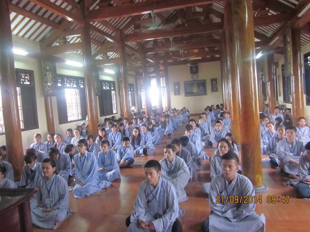 Trong thời khóa buổi sáng, các bạn được học kinh Pháp cú, dự nghe thời pháp từ TT.Thích Thanh Định – UV HĐTS GHPGVN, Phó Thường trực BTS GHPGVN tỉnh Thái Bình, trụ trì chùa Từ Xuyên- Trưởng ban tổ chức khóa tu. Buổi chiều, đại chúng cùng tụng kinh Vu Lan giải đáp những thắc mắc thông qua thời chia sẻ Phật pháp