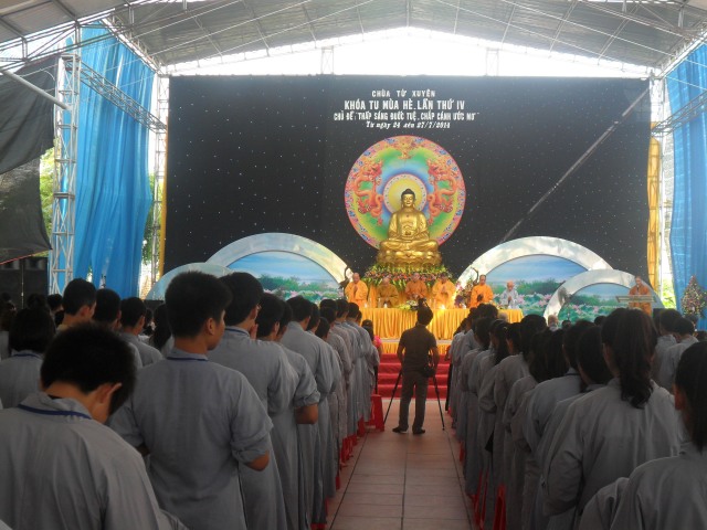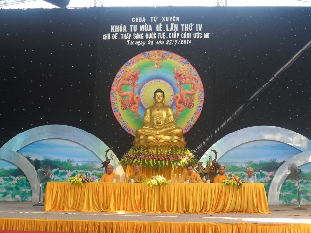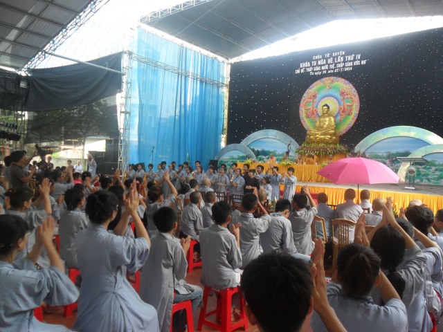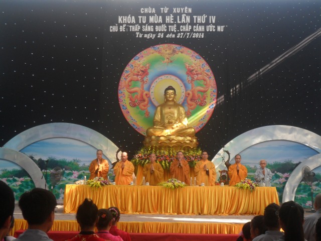 Mặc dù đang trong thời gian chư Tăng, Ni an cư kiết hạ nhưng với tâm nguyện hoằng pháp lợi sinh, TT.Thích Thanh Định – trụ trì chùa Từ Xuyên không từ khó nhọc đã tổ chức khóa tu mùa hè ba ngày với mục đích gieo duyên lành Phật pháp đến với các bạn thanh thiếu niên từ 15 đến 25 tuổi. Khóa tu năm nay diễn ra trong bốn ngày (từ 24-27/7/2014) với khoảng 800 thiện sinh đăng ký tham gia.