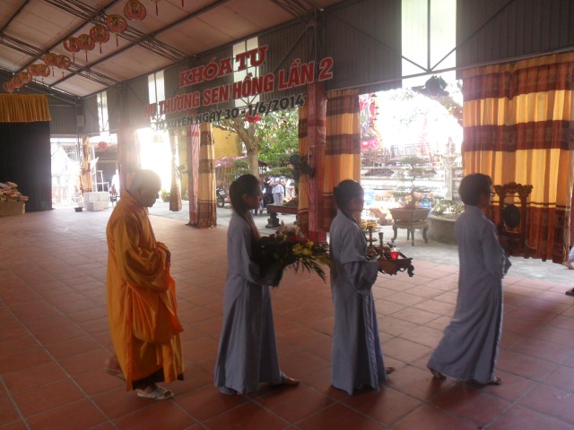 Đúng 8h00, đại chúng niệm Phật cung nghinh chư tôn đức chứng minh. ĐĐ.Thích Trúc Bảo Thành điều phối chương trình. Sau nghi thức niệm Phật cầu gia bị, TT.Thích Thanh Định – UV HĐTS GHPGVN, Phó ban TT BTS GHPGVN tỉnh, trụ trì chùa Từ Xuyên, Trưởng BTC khóa tu tuyên đọc diễn văn khai mạc. Các đại biểu đã có những lẵng hoa tươi thắm chúc mừng nhà chùa. Tiếp đó, đại diện thiện sinh đã dâng lời phát nguyện tu học. Cuối cùng, TT.Thích Thanh Hòa – UV HĐTS GHPGVN, Trưởng BTS GHPGVN tỉnh đã có đôi lời đạo từ với toàn thể BTC và thiện sinh. Những lời pháp tuy đơn giản, mộc mạc nhưng là động lực để toàn thể đạo tràng tinh tấn tu học.