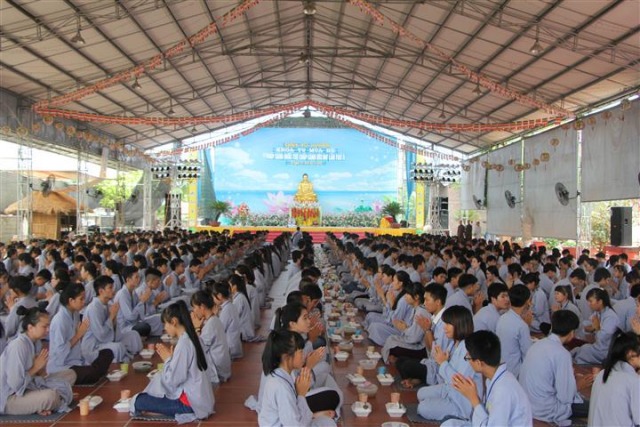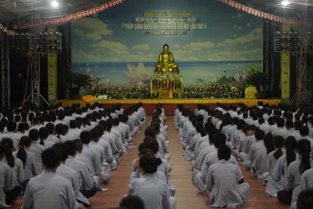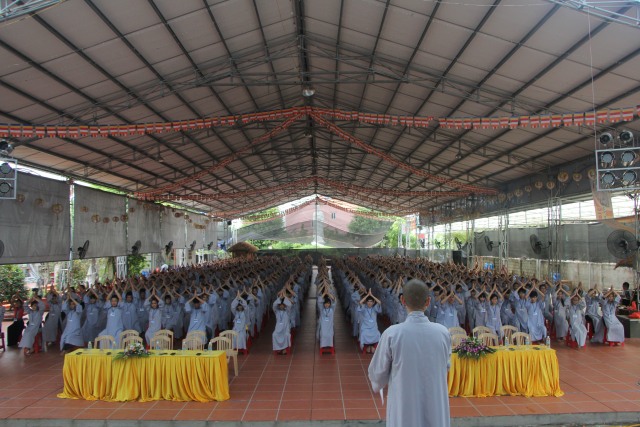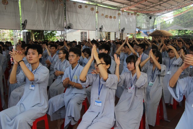 Đúng 8h00, đại chúng niệm Phật cung nghinh chư tôn đức chứng minh. SC.Thích Nhuận Bình điều phối chương trình. Sau nghi thức niệm Phật cầu gia bị, ĐĐ.Thích Thanh Ân, Phó ban tổ chức khóa tu tuyên đọc diễn văn khai mạc. Các đại biểu đã có những lẵng hoa tươi thắm chúc mừng nhà chùa. Tiếp đó, đại diện thiện sinh đã dâng lời phát nguyện tu học. Thay mặt cho đại diện chính quyền, ông Phạm Văn Thưởng có lời phát biểu chào mừng và mong muốn các bạn trẻ hãy hướng thiện, tu học giáo lý nhà Phật để xây dựng đời sống có đạo đức, trở thành người công dân tốt.