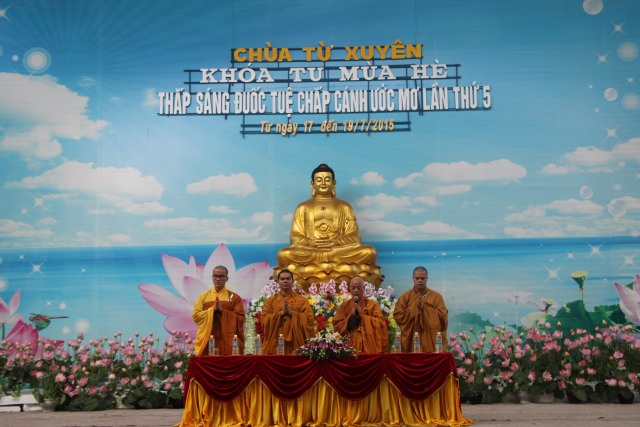 Sáng 17/07/2015 (nhằm 02/06/Ất Mùi), chùa Từ Xuyên long trọng tổ chức lễ khai mạc khóa tu. Đến chứng minh, tham dự buổi lễ có: TT.Thích Thanh Định, UV HĐTS GHPGVN, Phó ban Thường trực BTS GHPGVN tỉnh, trụ trì chùa Từ Xuyên, Trưởng BTC khóa tu; ĐĐ.Thích Trí Sử, Trưởng BTS GHPGVN TP.Thái Bình; ĐĐ.Thích Thanh Ân, Phó Thư ký BTS PG tỉnh, ĐĐ.Thích Tâm Tiến, Chư Tăng chùa Hoằng Pháp (Hóc Môn, TP.HCM0, chư tôn đức Tăng, Ni trong BTC khóa tu.