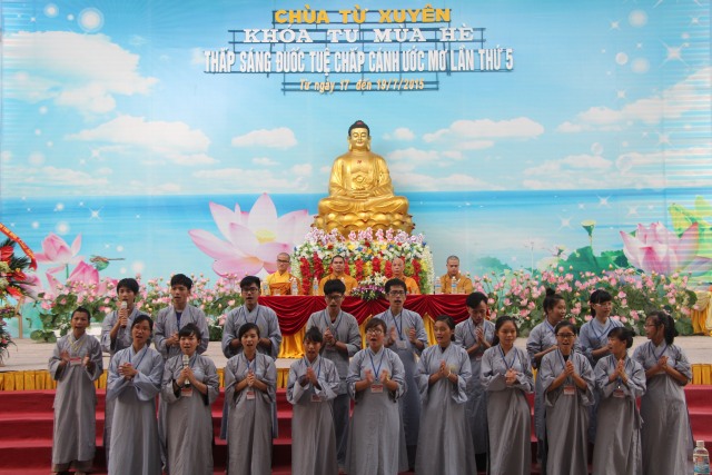 Mặc dù đang trong thời gian chư Tăng, Ni an cư kiết hạ nhưng với tâm nguyện hoằng pháp lợi sinh, TT.Thích Thanh Định, trụ trì chùa Từ Xuyên không từ khó nhọc đã tổ chức khóa tu mùa hè với mục đích gieo duyên lành Phật pháp đến với các bạn thanh thiếu niên từ 15 đến 27 tuổi. Khóa tu năm nay diễn ra trong bốn ngày (từ 16-19/07/2015) với gần 700 thiện sinh đăng ký tham gia.
