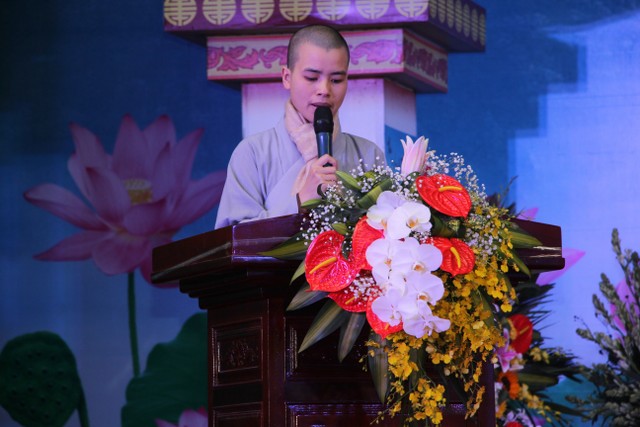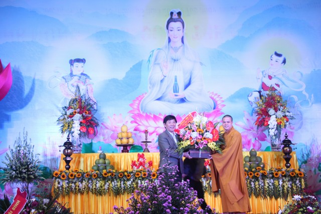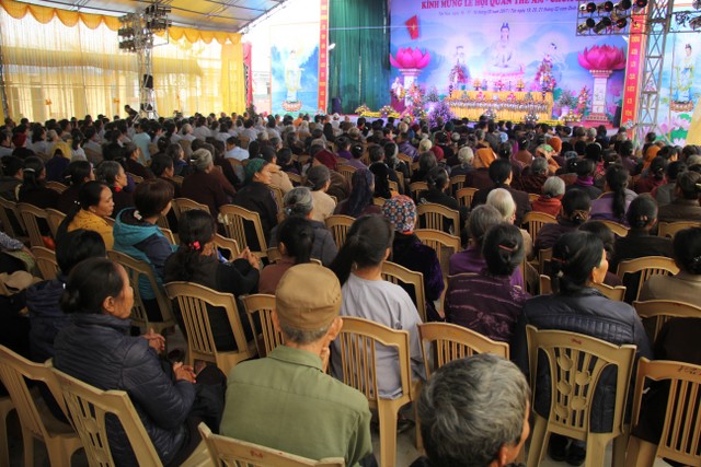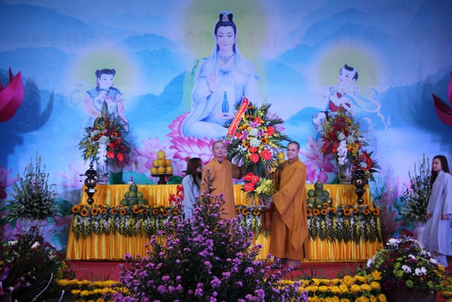 Tiếp đó, TT.Thích Thanh Định, UV HĐTS, Phó ban Thường trực BTS PG tỉnh thay mặt cho chư tôn đức tuyên đọc diễn văn về ý nghĩa của lễ hội Quan Âm, nhắc nhở quý Phật tử hãy thực tập hạnh lắng nghe của Bồ tát, tích cực làm những việc công ích gây niềm lợi lạc để cho hoa trái tình thương được hiển hiện khắp mọi nơi mọi chốn.